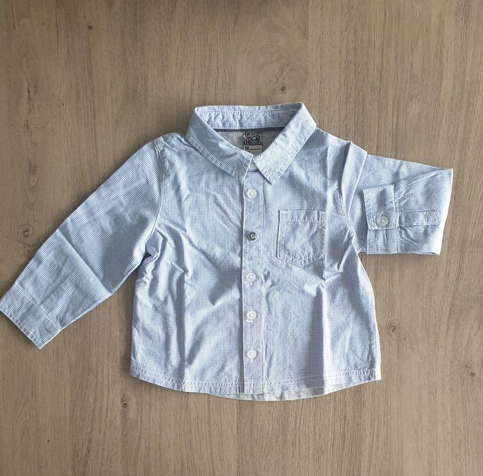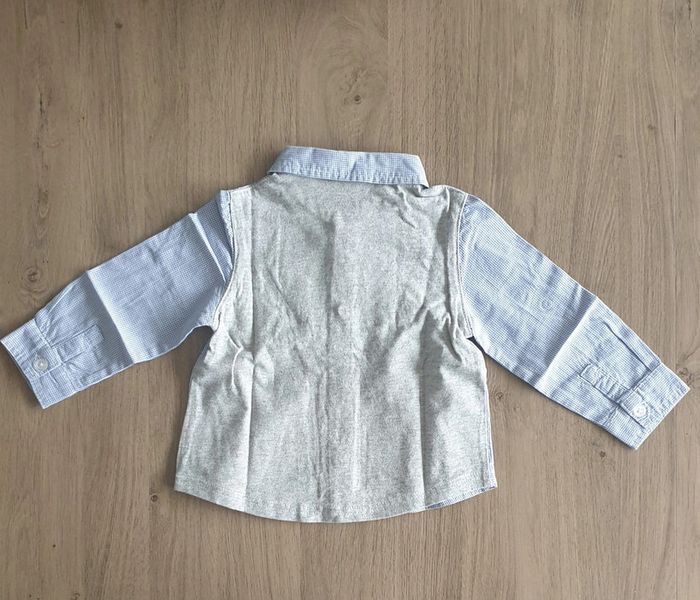 Neuve  Chemise bébé bleu blanc dos gris, taille 18 mois, Tape-à-l'œil - photo numéro 1