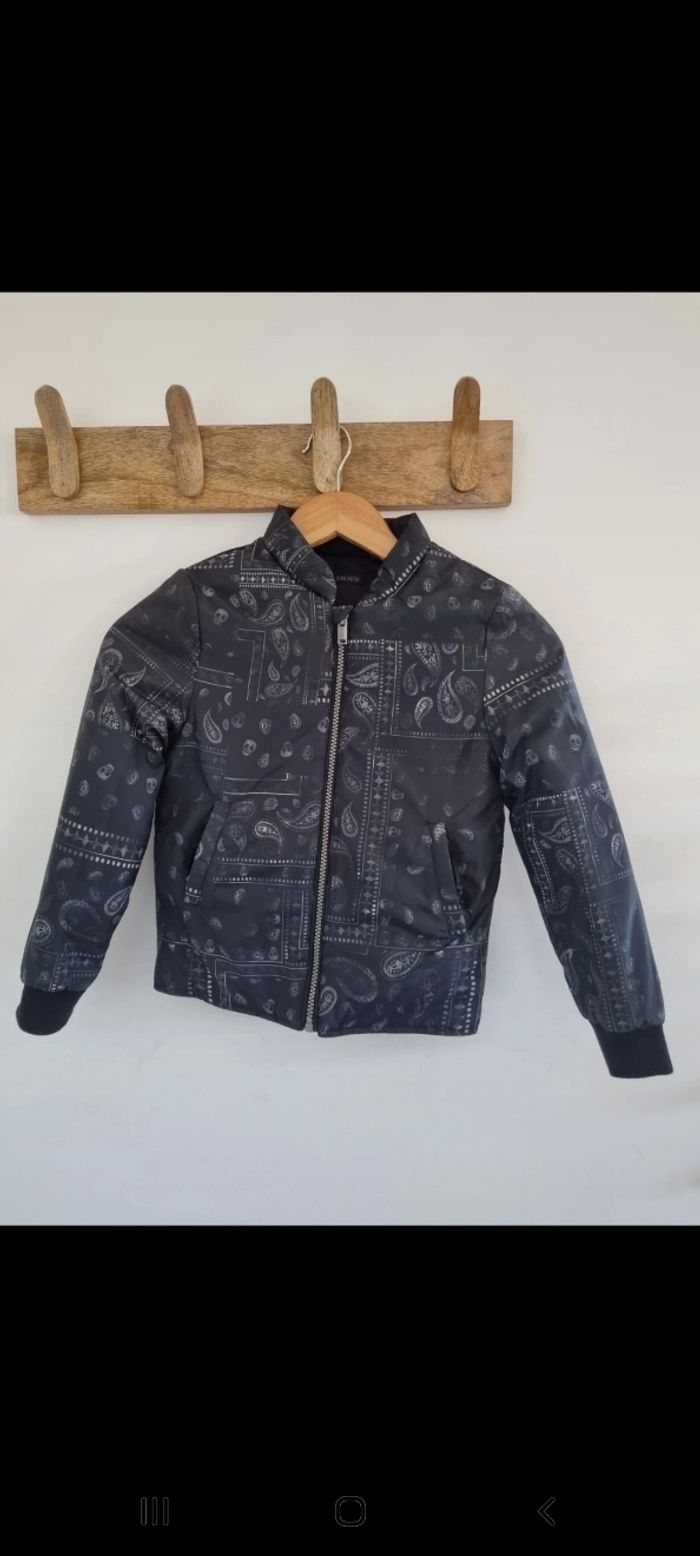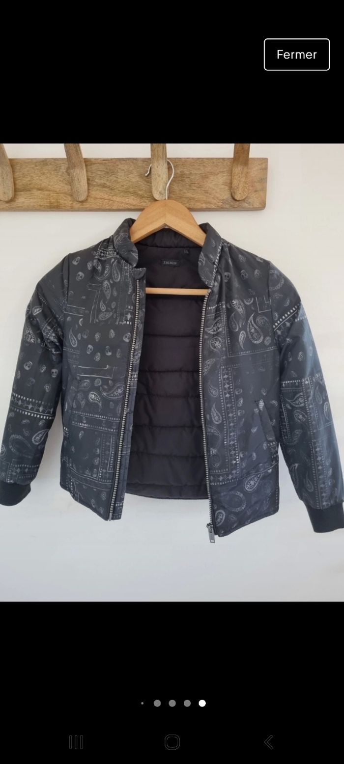 Doudoune légère, taille 8ans. Portée 1 seule fois. En parfait état. Couleur noir avec motifs (voir photos).