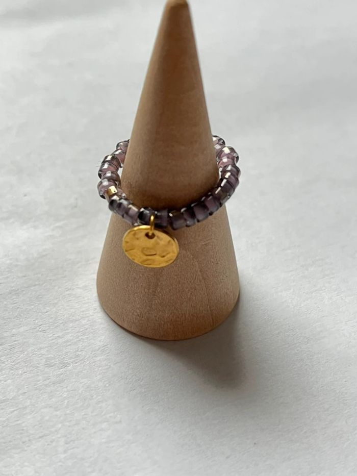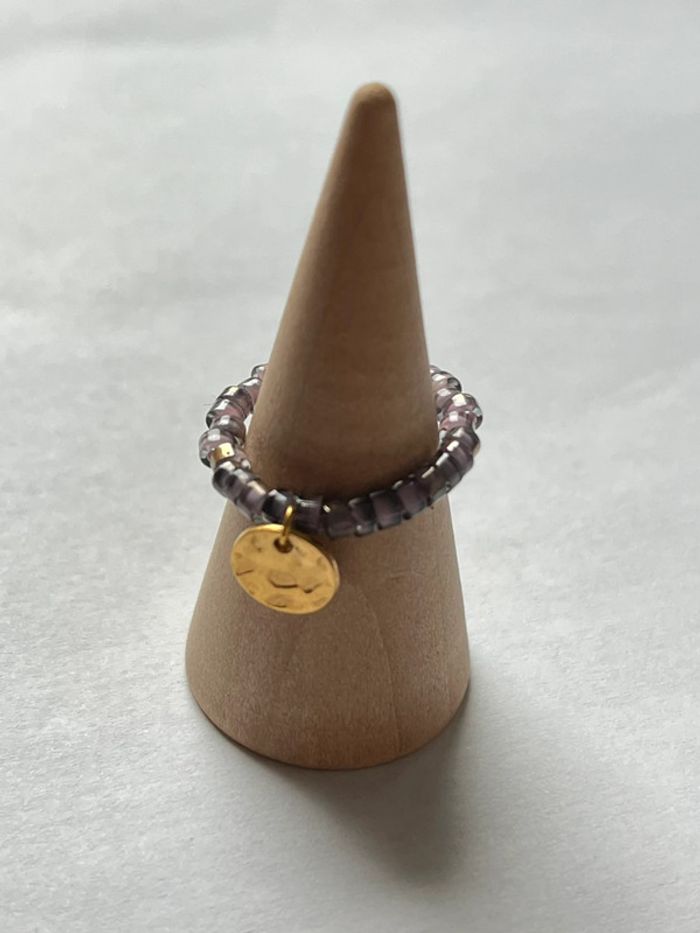 Bague perles pendentifs pastille acier inoxydable - photo numéro 1