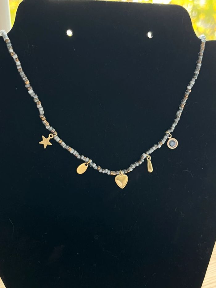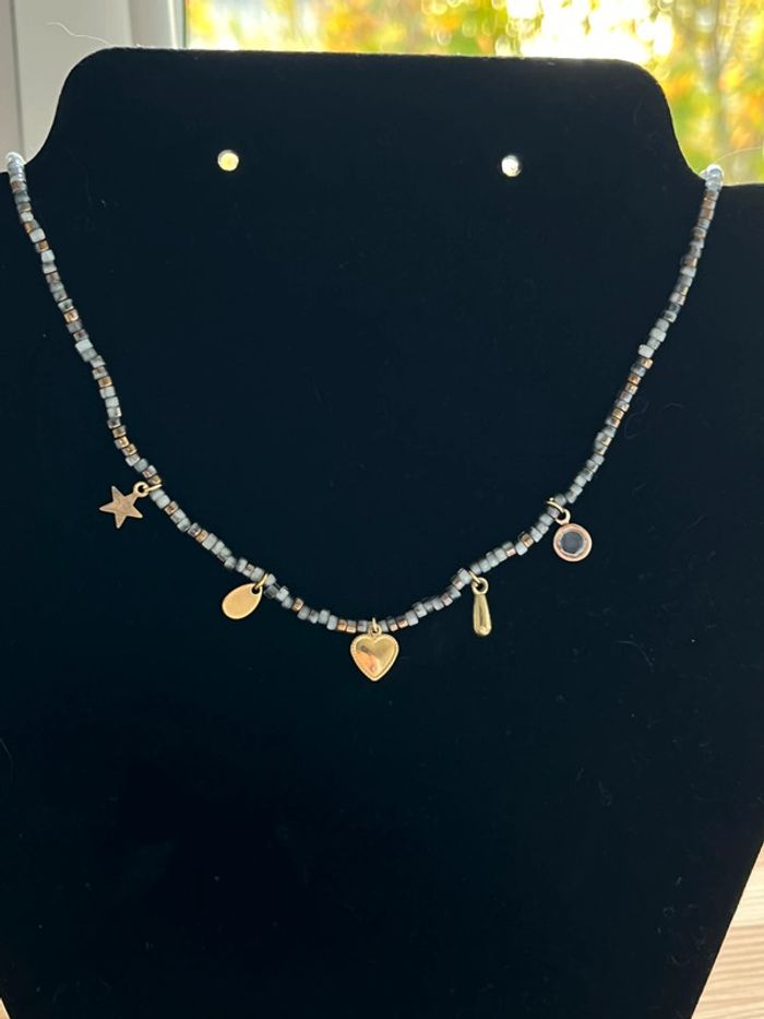 Collier perles et pendentifs acier inoxydable - photo numéro 1