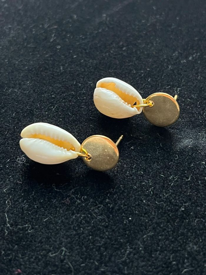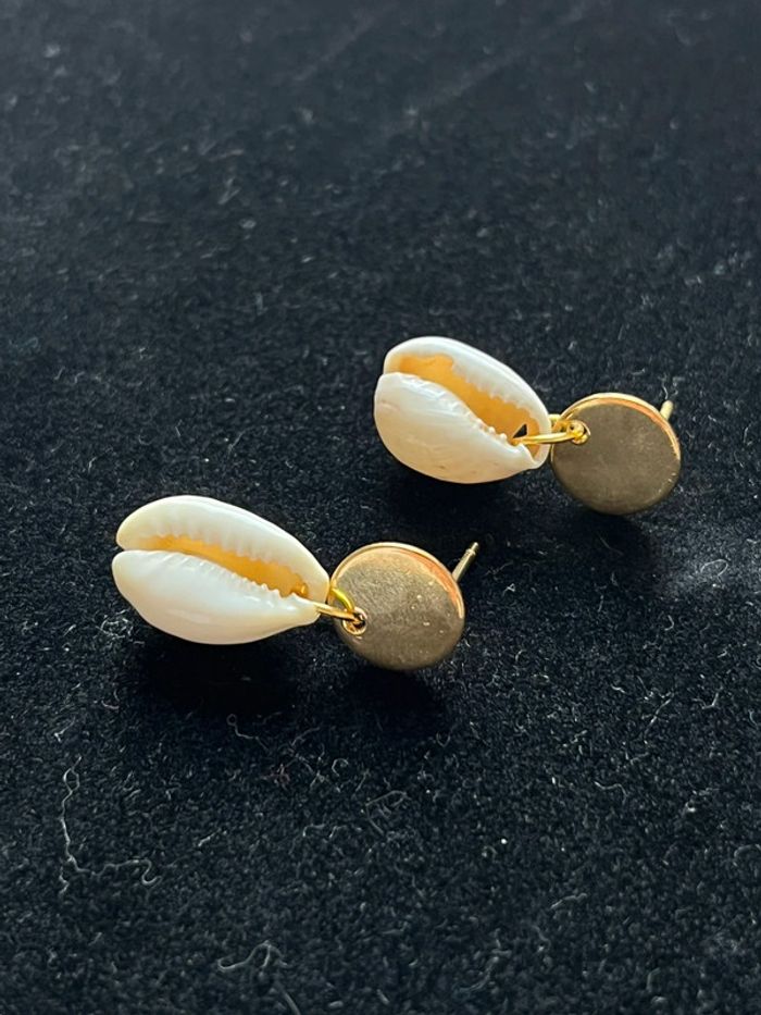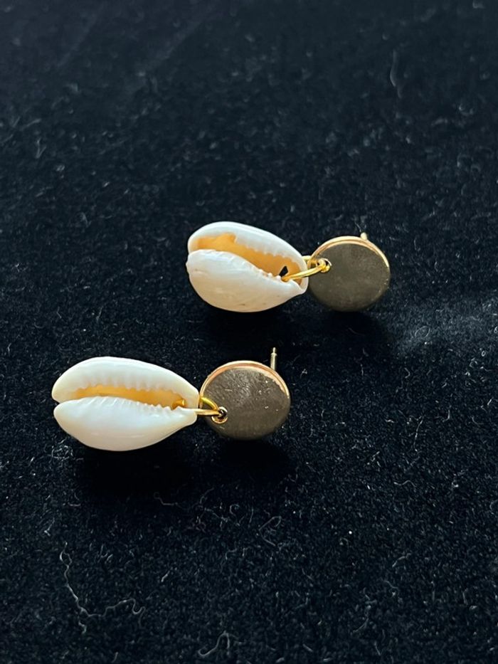 Boucles d’oreilles acier inoxydable et véritables coquillages tahitien - photo numéro 2