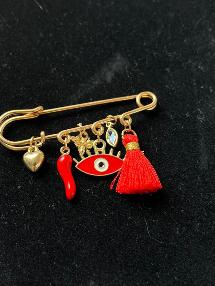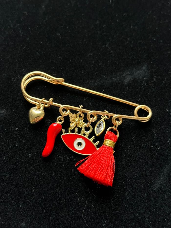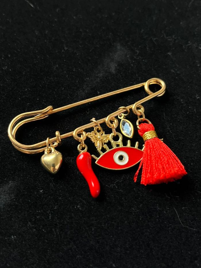 Broche breloques rouge et doré pendentifs - photo numéro 2