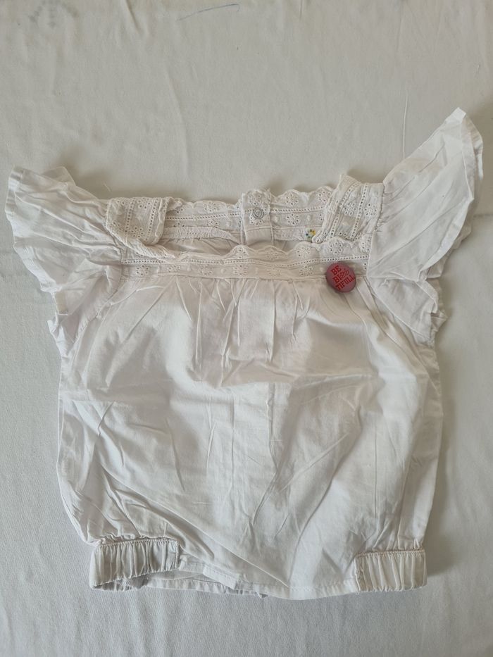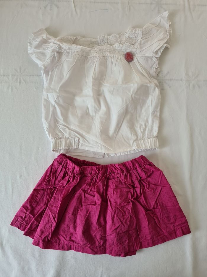 Ensemble été Kitchoun 9 mois composé : - d'une blouse à manche courtes avec ouverture intégrale au dos - d'une jupe doublée