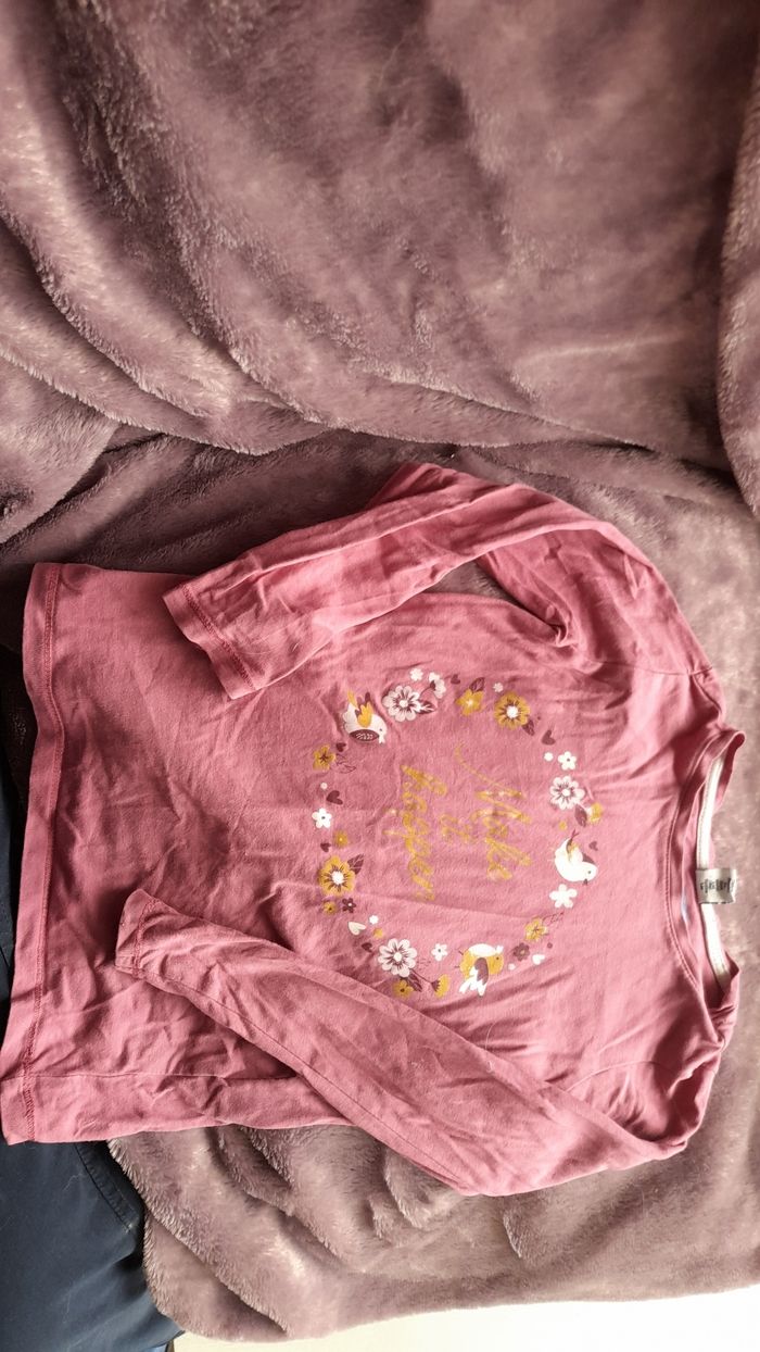 Tee shirt manches longues rose , oiseaux