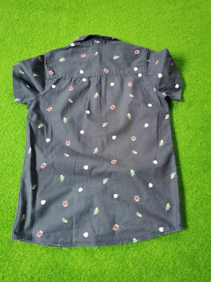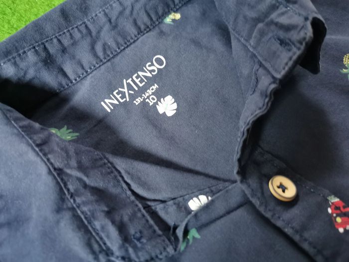 Chemise bleu marine à motifs feuilles et anans, pour 10 ans Inextenso, manches courtes, en coton en très bon état général. Mesures : Longueur : 60 cm largeur dos entre les aisselles : 42 cm Largeur épaules : 32 cm Longueur manche depuis l'aisselle : 5 cm Longueur manche depuis l'épaule : 17 cm Poids : 106g Pensez à faire des lots afin de bénéficier des remises que j'ai régulièrement sur ma page. #chemisebleumarine #chemisebleu #chemisemanchescourtes #chemise10ans #chemiseinextenso