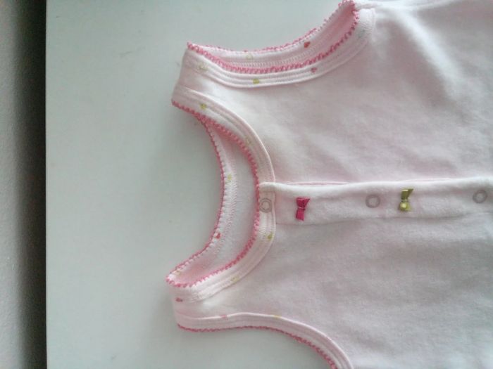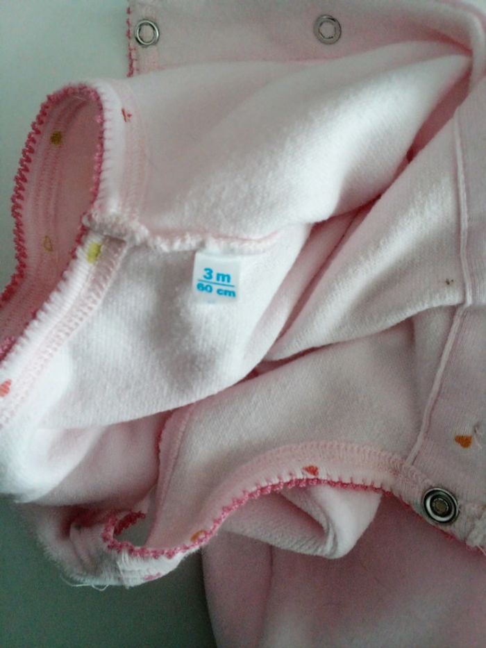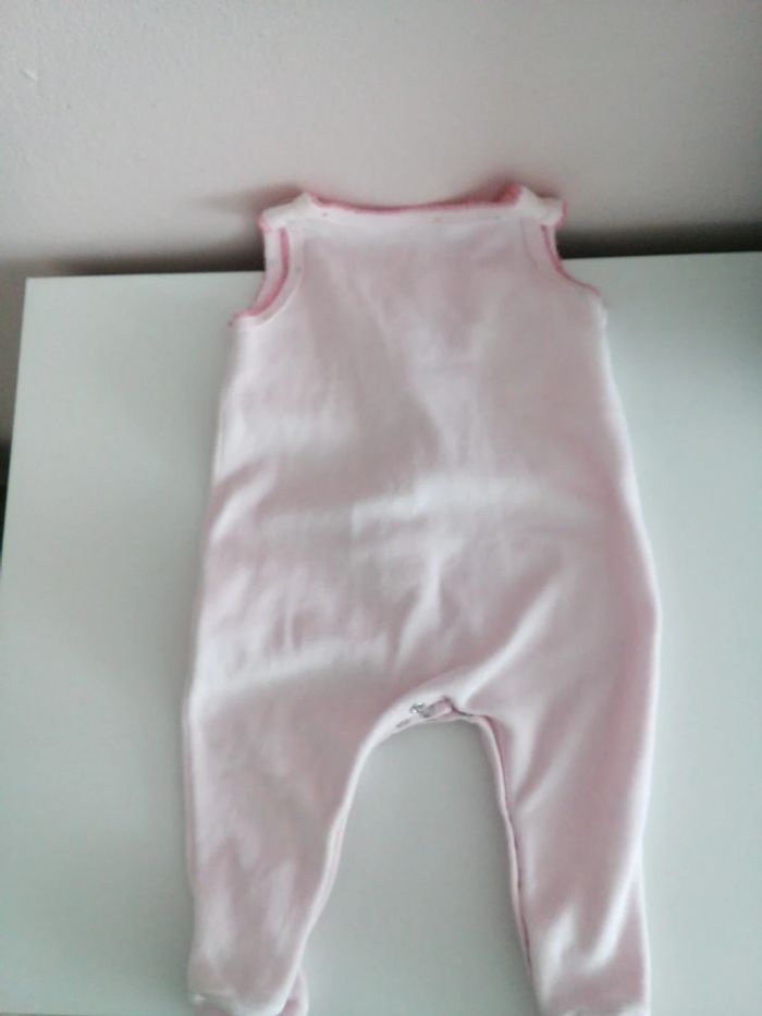 Grenouillère rose plus foncé que sur la photo quelques légères traces au niveau de l'encolure qui ne se voient pas bien sur la photo Taille 3 mois. 60 cm N'hésitez pas à regarder mes autres annonces réduction sur les lots Bénéfice de mes ventes pour les chats que j'ai sorti de la rue