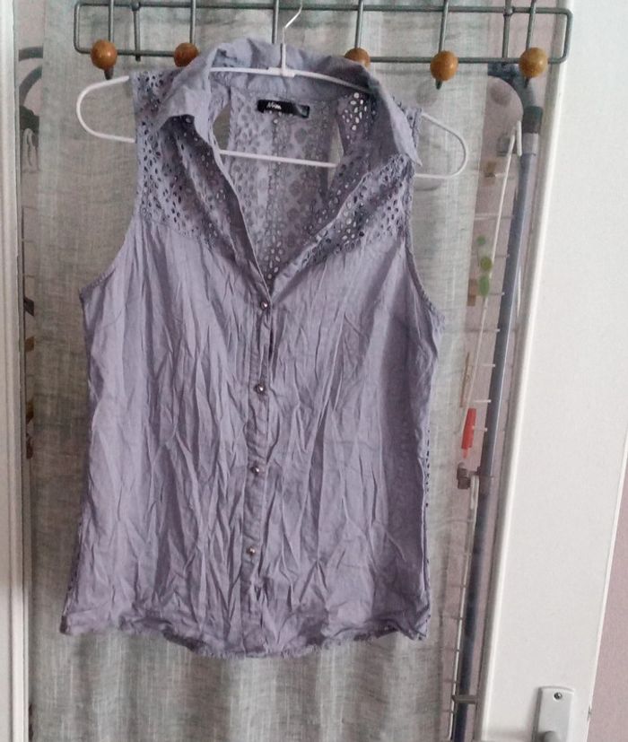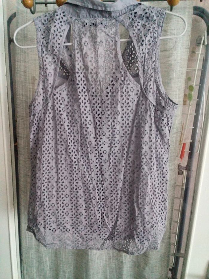 Chemise ajourée sans manche, mauve en bon état taille 38 Largeur aisselle 48 cm longueur 59 cm N'hésitez pas à regarder mes autres annonces réduction sur les lots Bénéfice de mes ventes pour les chats que j'ai sorti de la rue