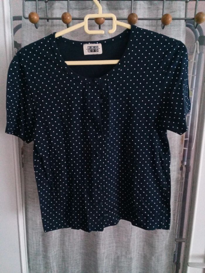 Gilet t-shirt bleu marine pois blanc Promod - photo numéro 1