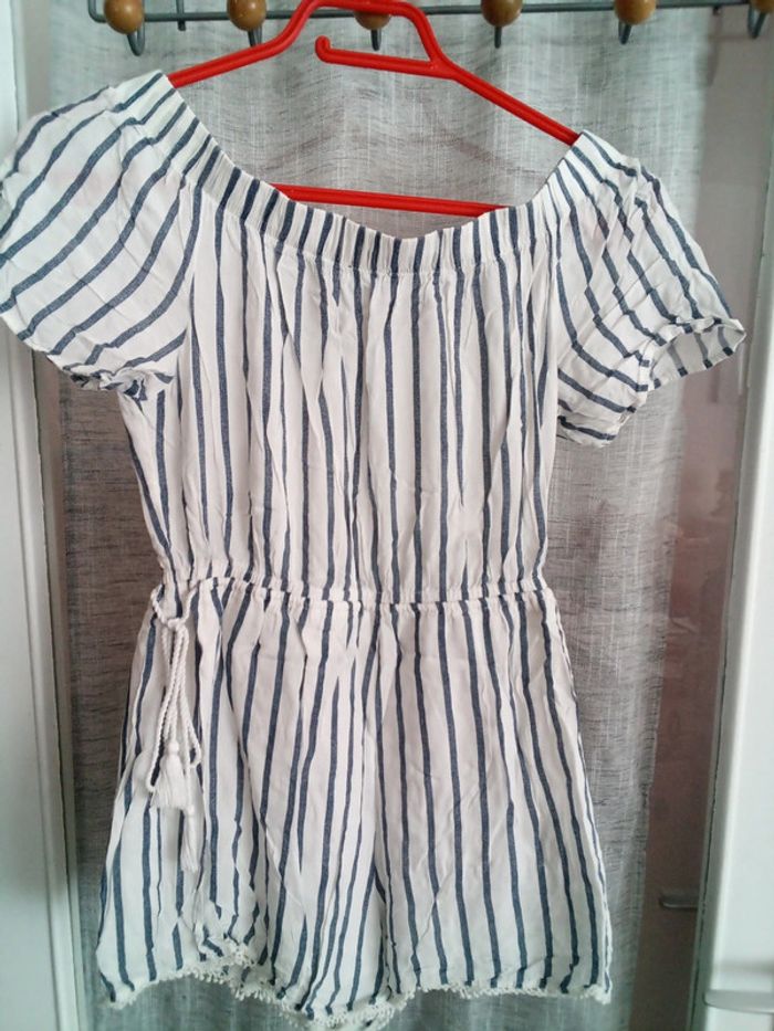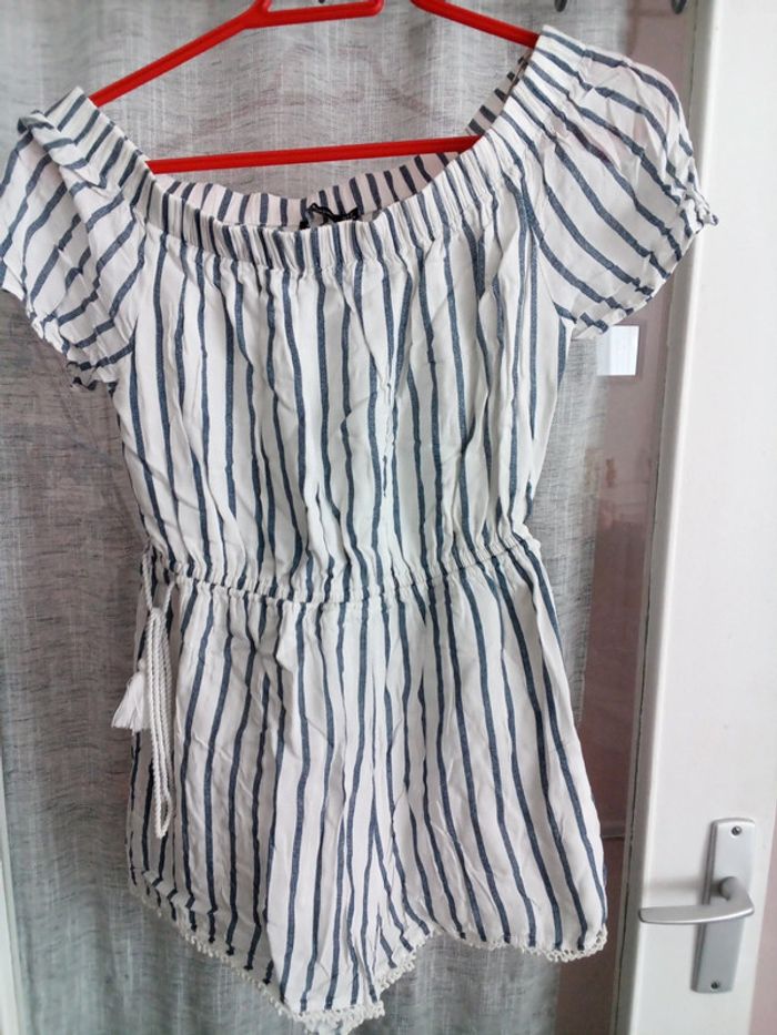 Combishort bleu et blanc rayé Bershka - photo numéro 1