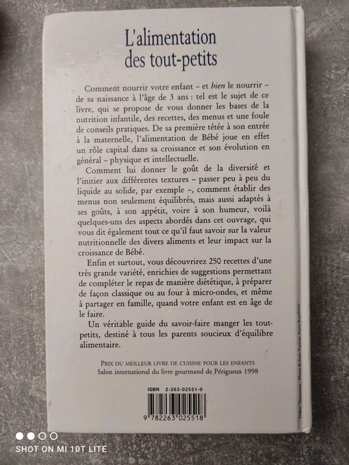 Livre sur l'alimentation des tout-petits éditions de 1998 bon état Bénéfice de mes ventes pour les chats que j'ai sorti de la rue