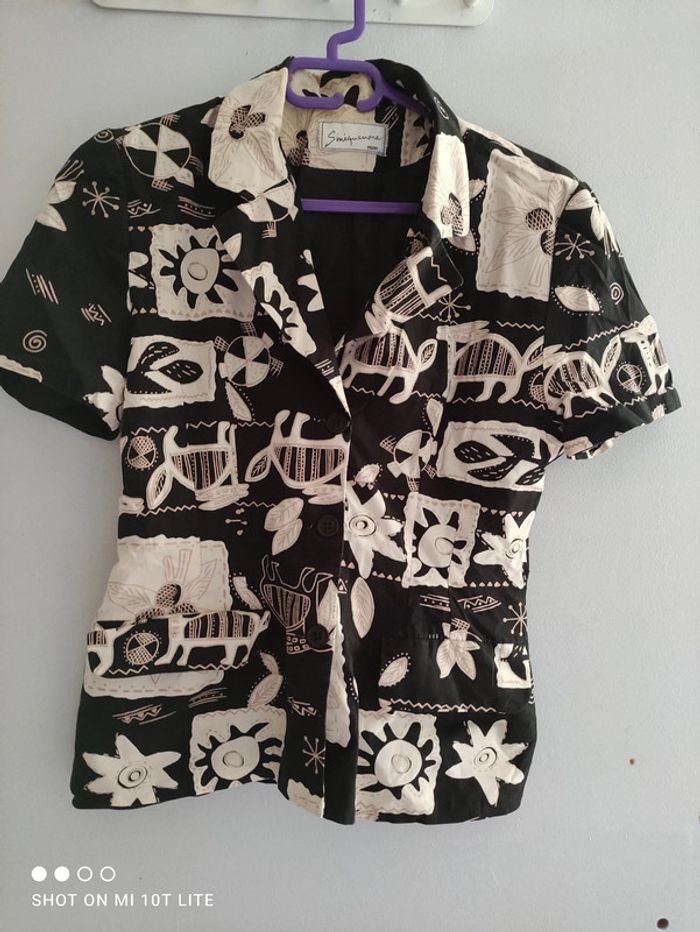 Veste vintage noire et blanche marque sinequanone très bon état 2 fausses poches sur le devant légèrement cintrée largeur aisselle 45 cm Hauteur totale. 57 cm Pas d'étiquette de taille probablement un 38 Vérifiez bien les mesures avant achat car pas de retour possible N'hésitez pas à regarder mes autres annonces réduction sur les lots Bénéfice de mes ventes pour les chats que j'ai sorti de la rue