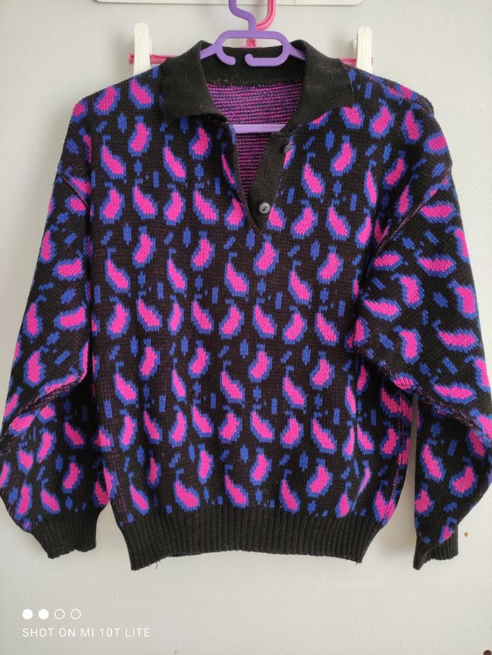 Pull vintage noir rose bleu
