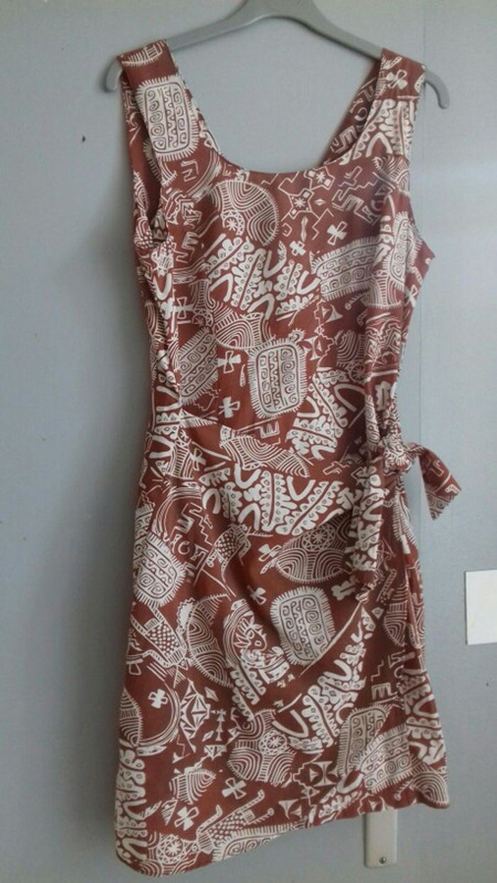 Robe débardeur marron et blanc style porte feuille - photo numéro 2