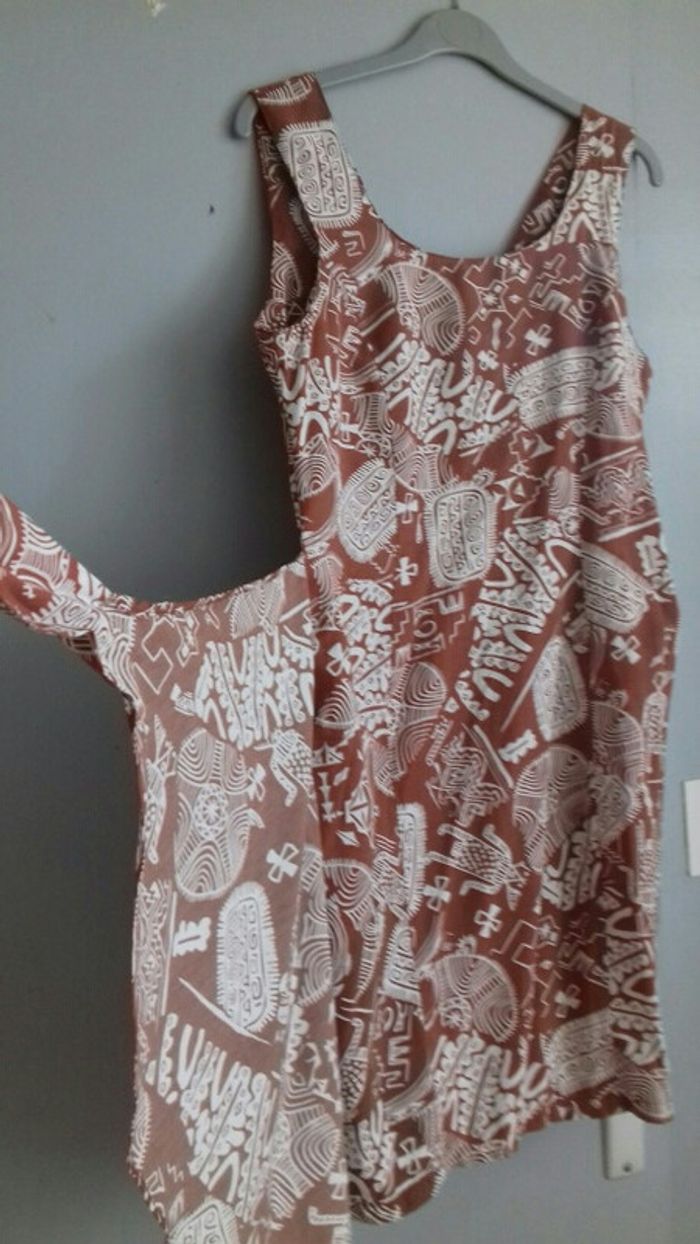 Robe débardeur marron et blanc style porte feuille - photo numéro 1