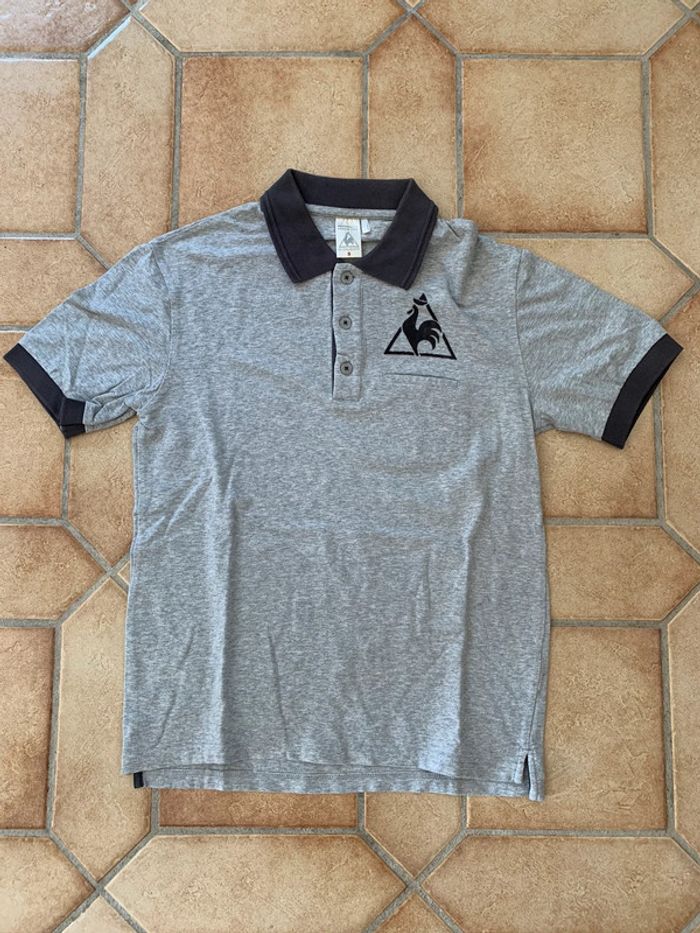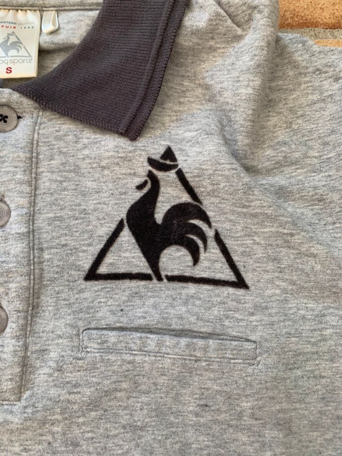 Produit : Polo Le Cop Sportif Vintage gris. Le logo de la marque est en velours. 95% coton Marque : Le coq sportif Taille : S État : Très bon état