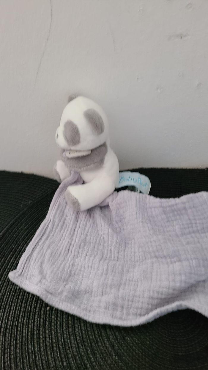 DOUDOU BABY NAT PANDA mouchoir lange gaze coton  gris blanc - photo numéro 1