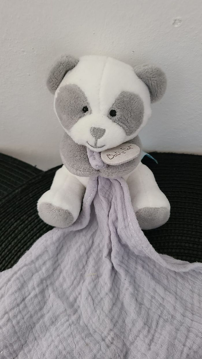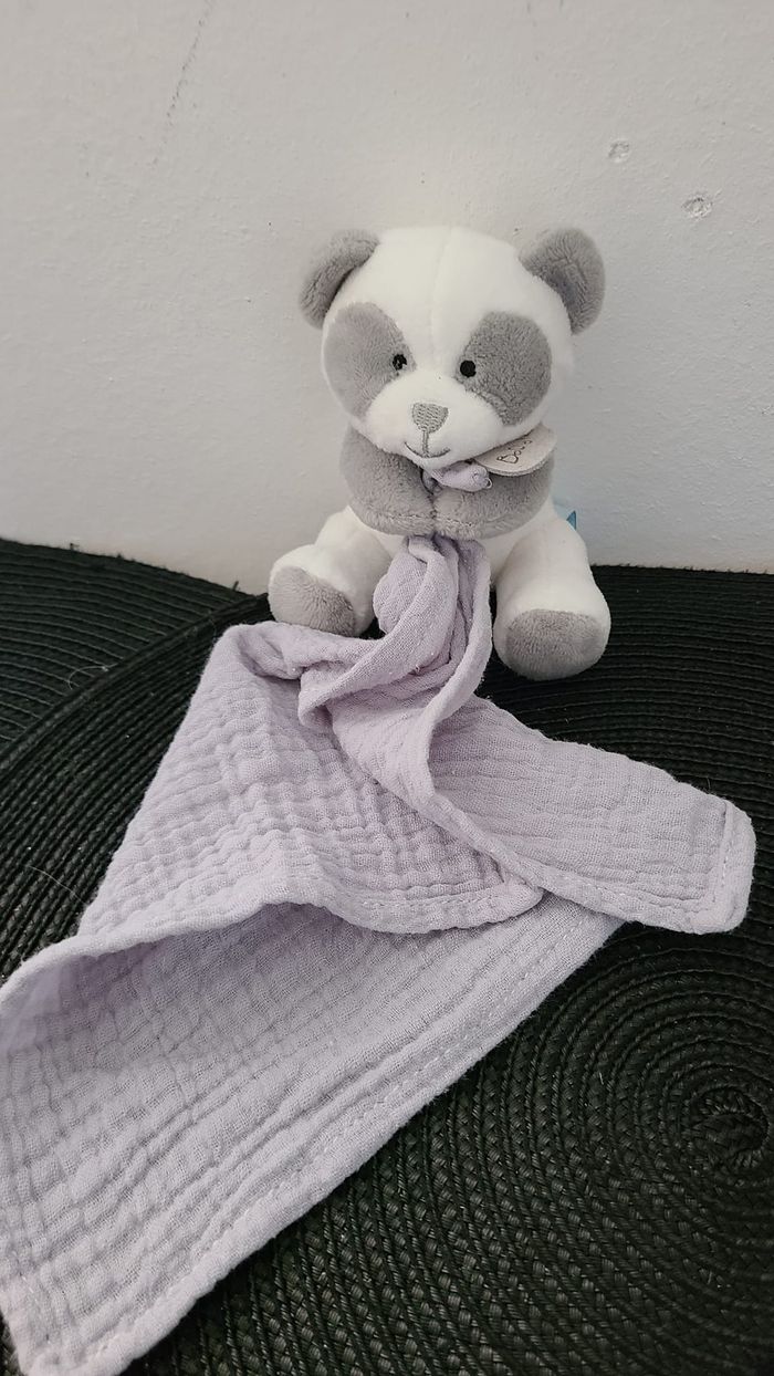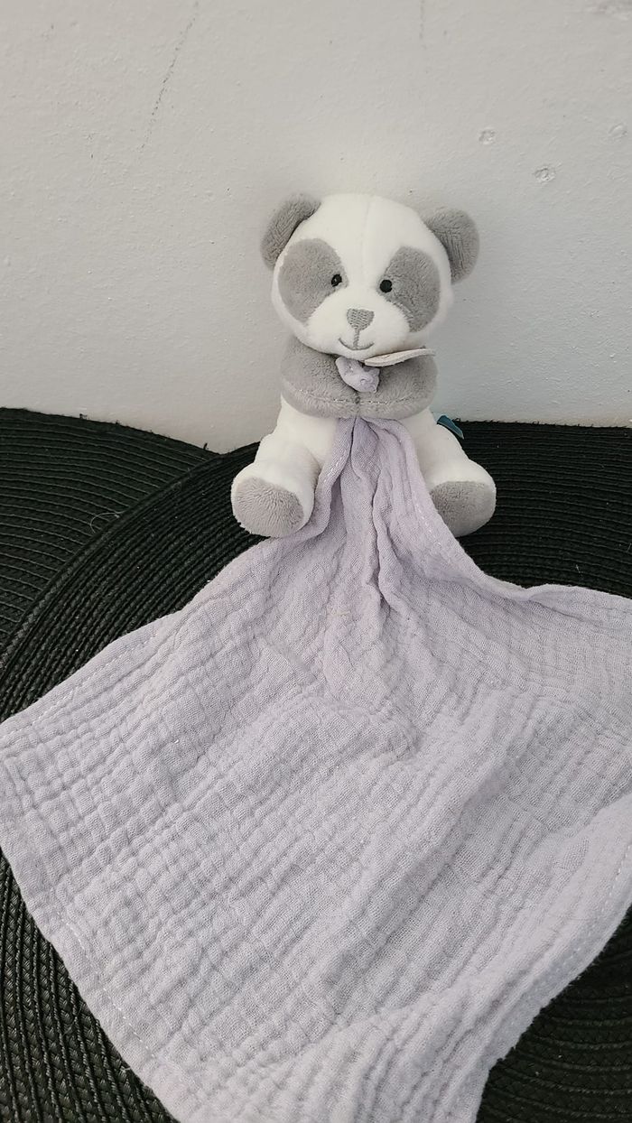 DOUDOU BABY NAT PANDA mouchoir lange gaze coton  gris blanc - photo numéro 5