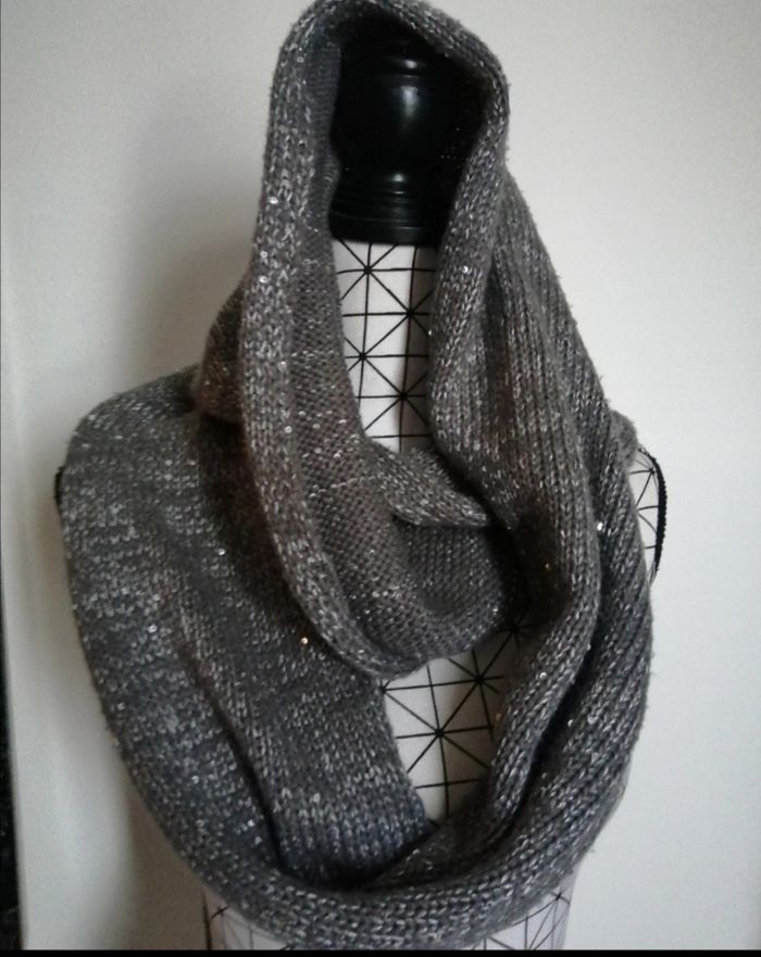 Tour de cou. Écharpe grise argentée - photo numéro 1