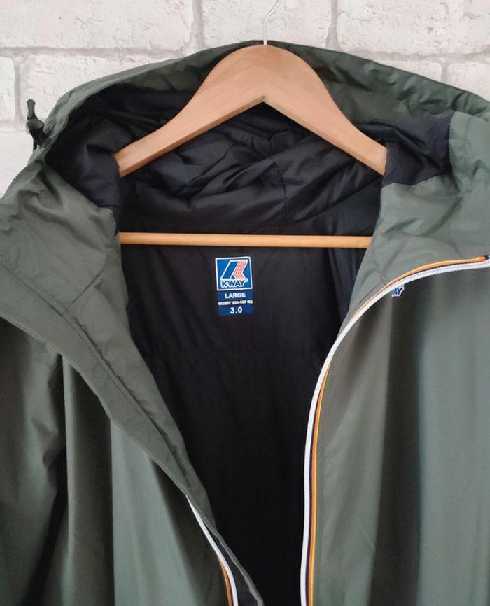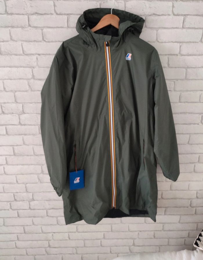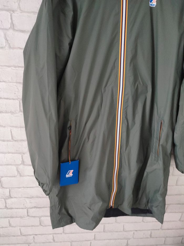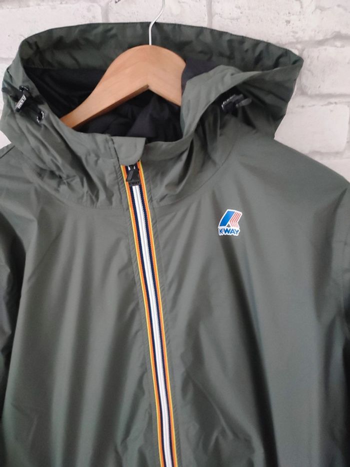 Coupe vent k-way le vrai 3.0 Couleur black torba ce qui correspond à un kaki Unisexe Taille L Capuche. Poche de rangement zippée dans le dos. Imperméable et deperlant. Collection actuelle. Toujours en vente à 210 euros sur le site k-way. Non négociable!