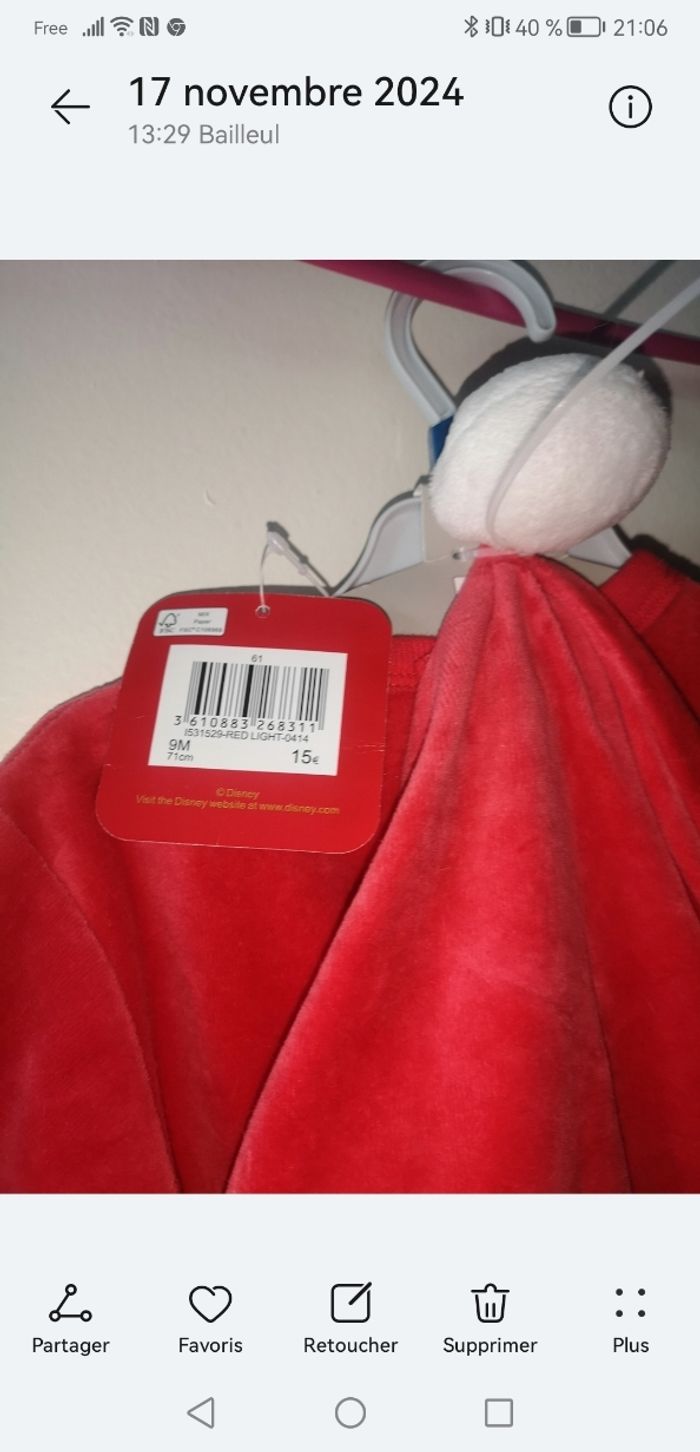 Pyjama minnie Disney Noël taille 9 mois - photo numéro 1