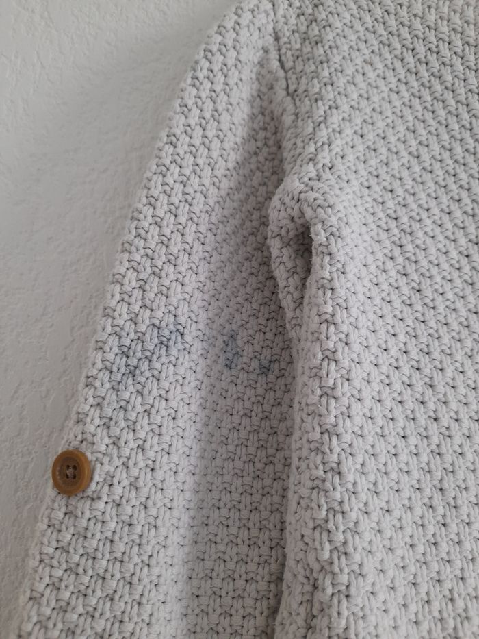 En bon état général, défauts visibles en photos tâches au niveau des bras et un bouton cassé