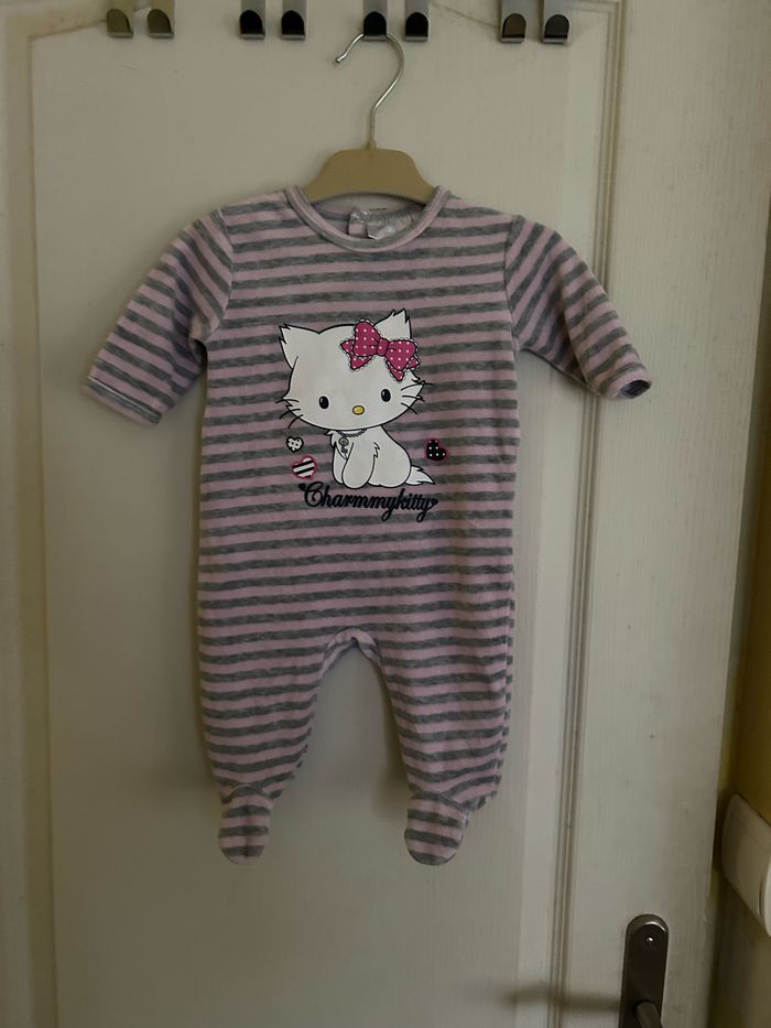 Vends pyjama gris rayée rose « Charmmykitty » en très bon état. Taille 3mois