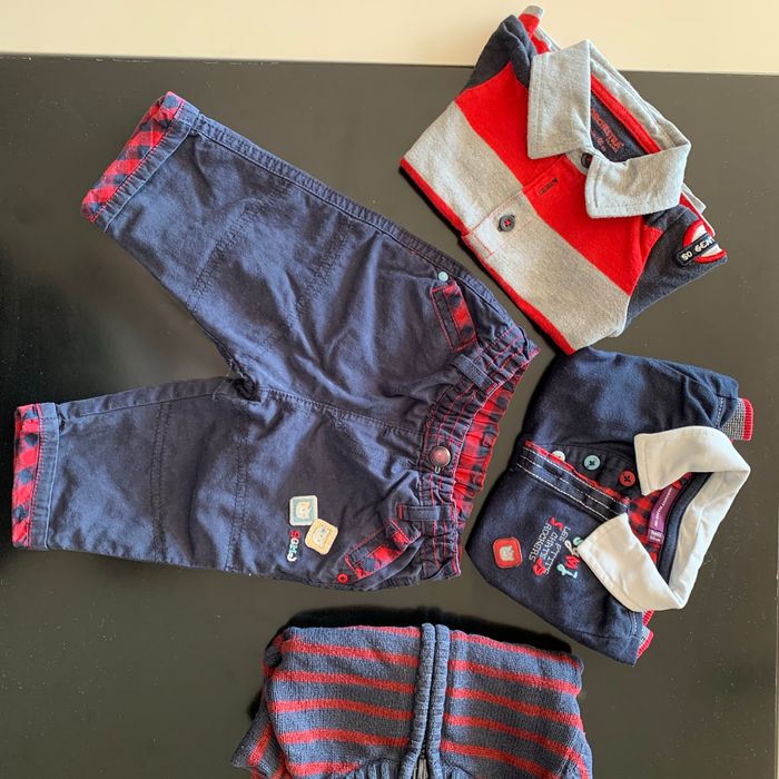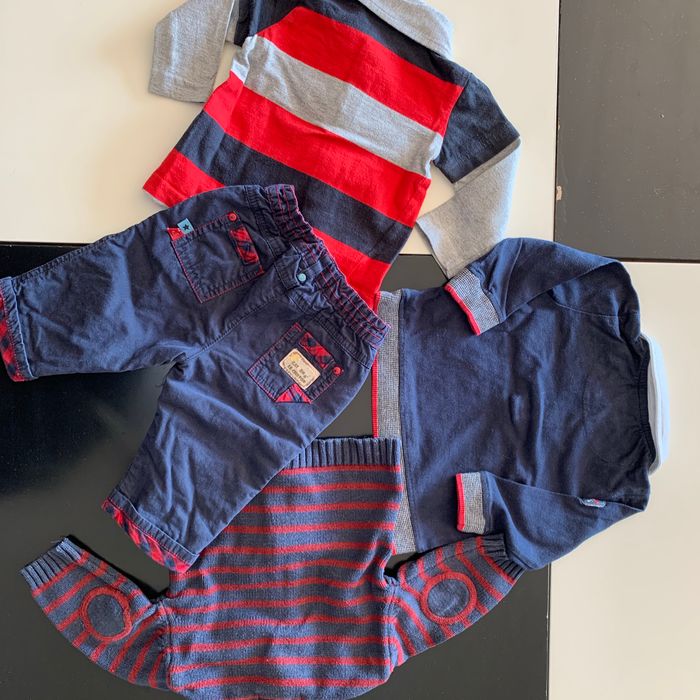 Ensemble 3 mois Rouge & Bleu Pantalon, 2 polos, Gilet - photo numéro 2