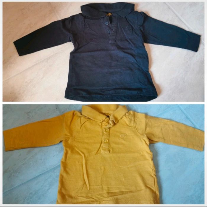 2 t-shirts polos à manches longues 1 moutarde et 1 bleu marine #tiffanyostertag_garçon9mois