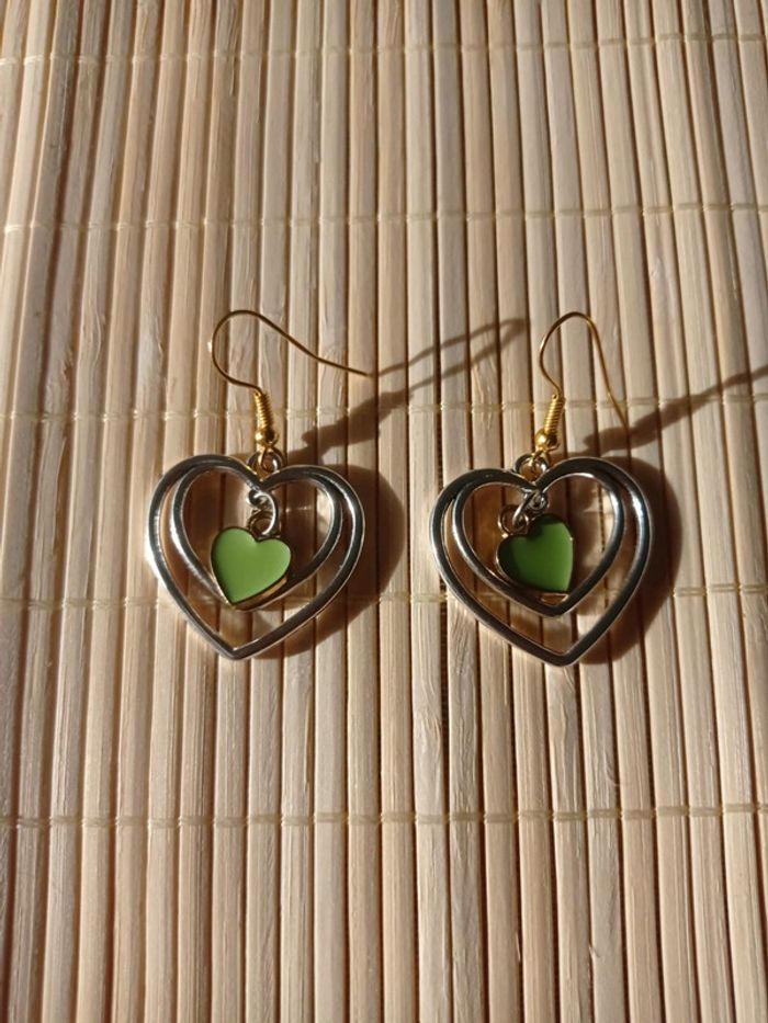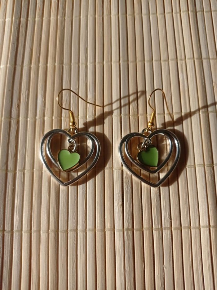 Ces boucles d'oreilles sont réalisées par mes soins 💕. Breloques coeur émaillé. Les apprêts sont acier inoxydable couleur argent et doré.