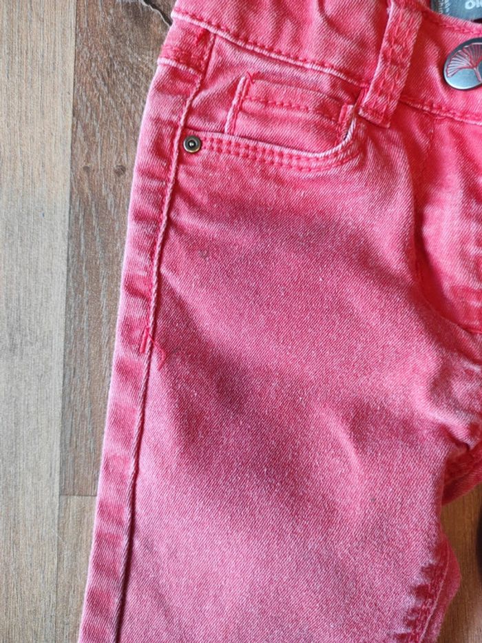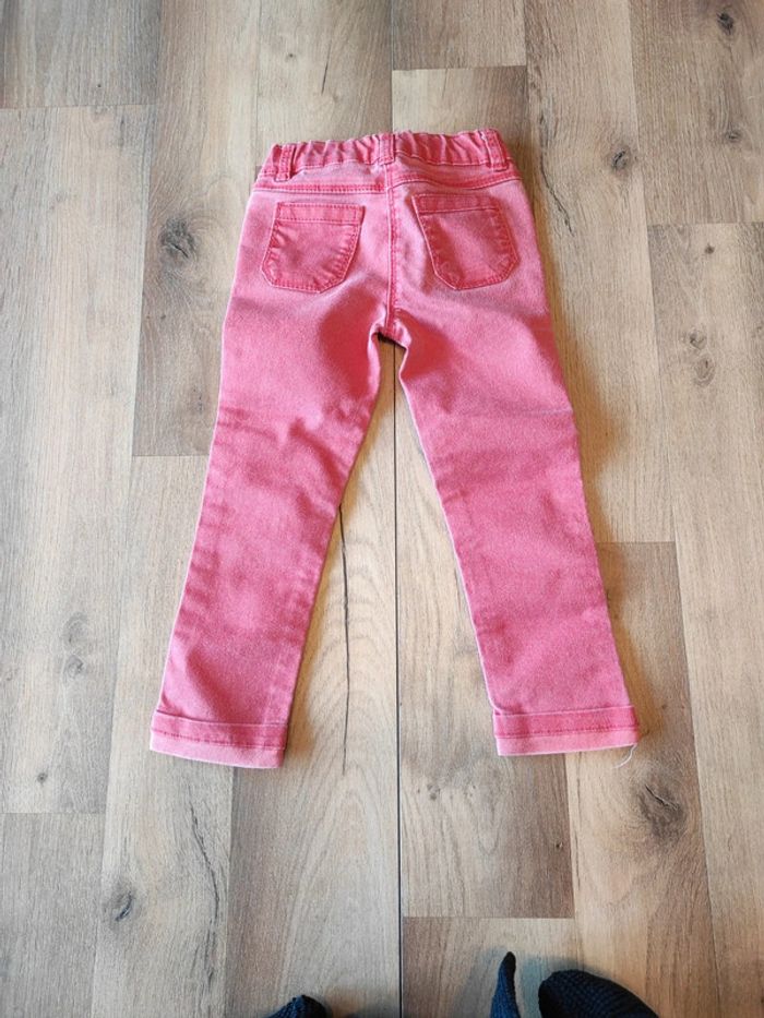 Jean orchestra qui taille entre 2 et 3 ans car trop grand pour le mettre en 2 ans et trop petit en 3 ans donc c'est vraiment une taille intermédiaire je trouve en état satisfaisant petites tâches en haut et couleur moins vive qu'avant voir photos #3ansmarygio59fille #23moismarygio59babygirl