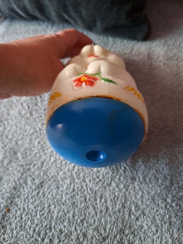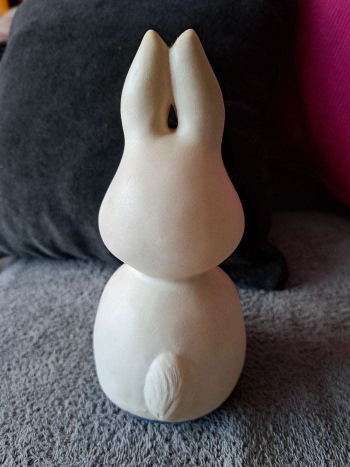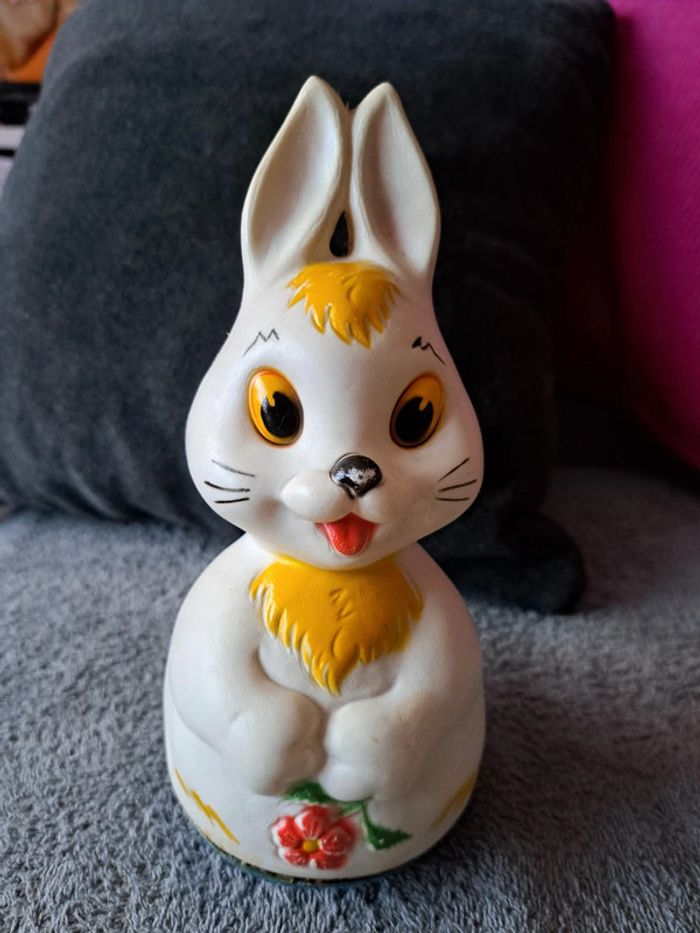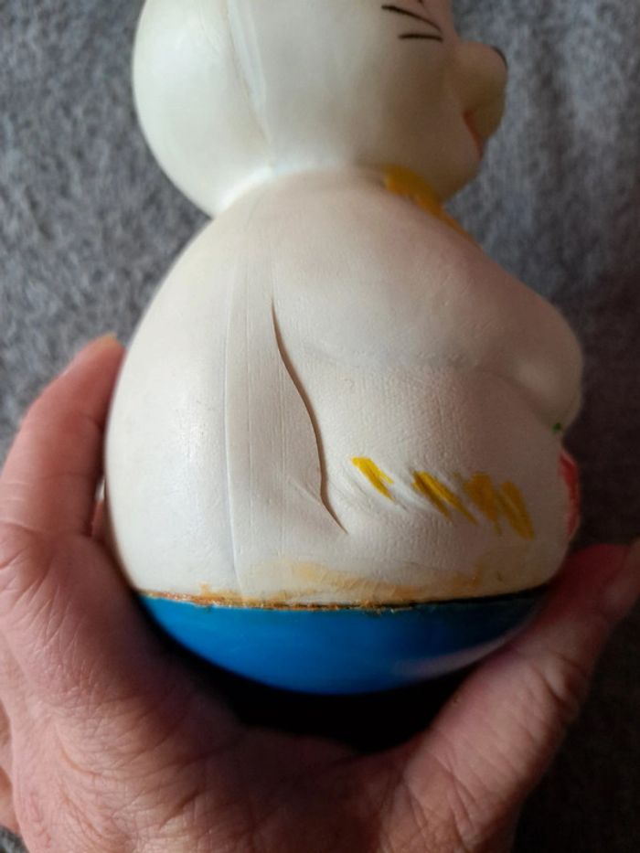 Ancien culbuto , vintage Année 60 Lapin blanc Hauteur 24cm Diamètre 10cm Made in France Fendu sur un côté