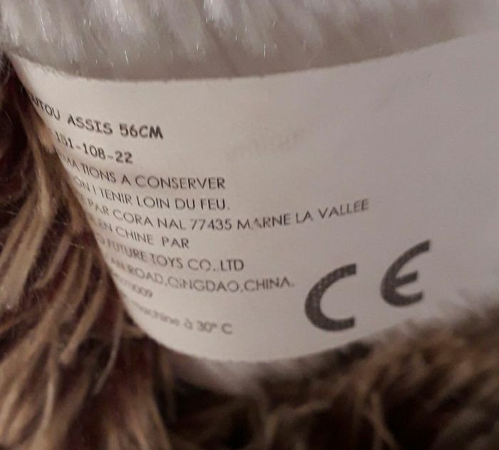 Peluche assis 56 cm norme CE lavé avant mise en vente