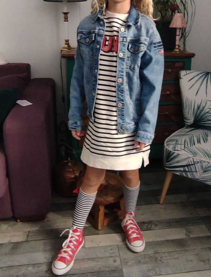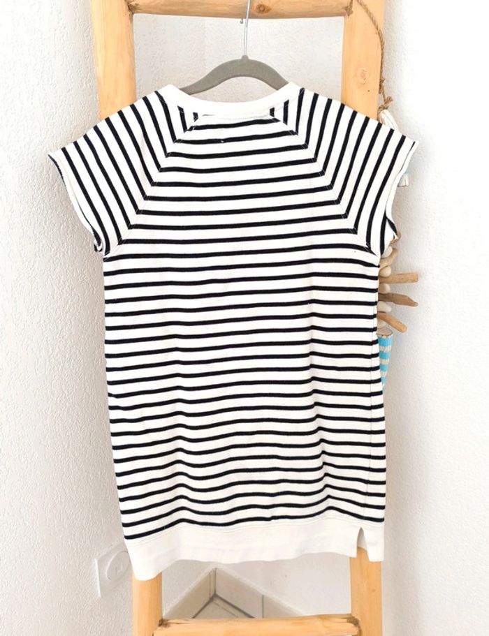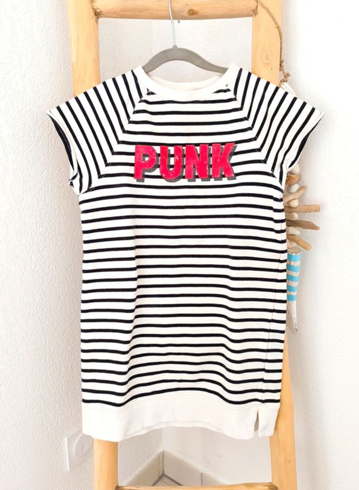 #loulaliefille10ans dans la recherche pour voir mon 10 ans fille Robe sweat Zadig et Voltaire rayée noir blanc inscription Punk rouge effet used. Elle est en très bon état juste un petit point sur une rayure blanche, il faut vraiment mettre le nez dessus. Kiabi seconde main et beebs possible