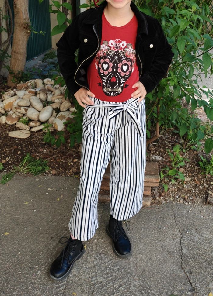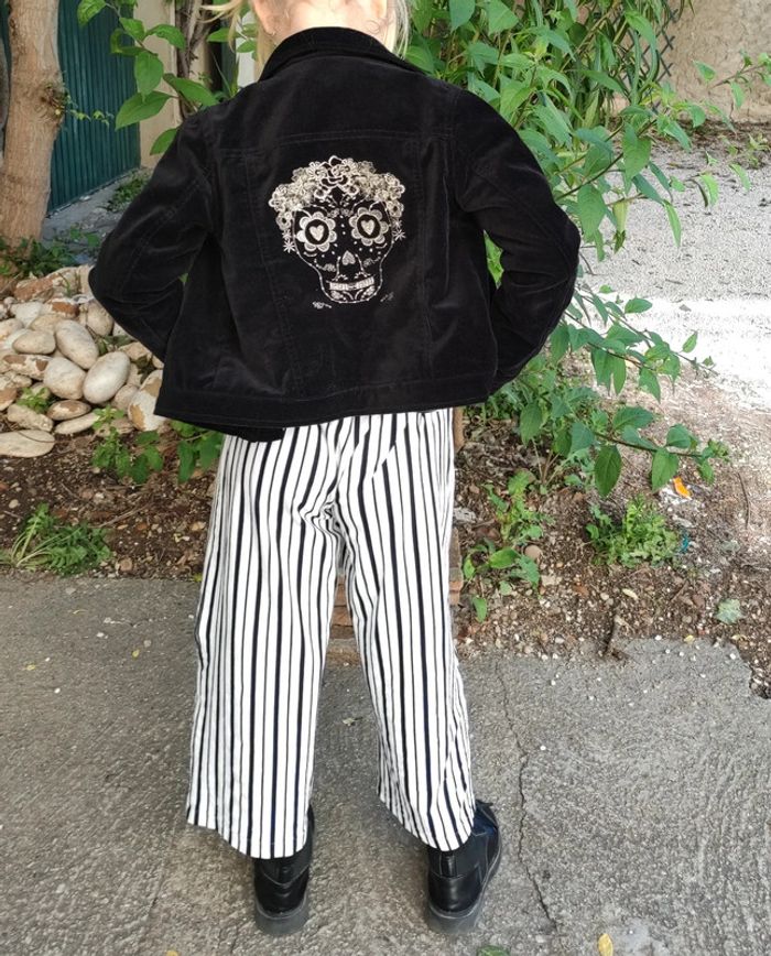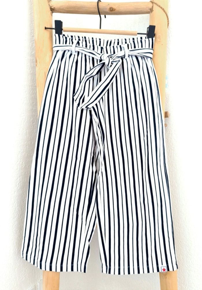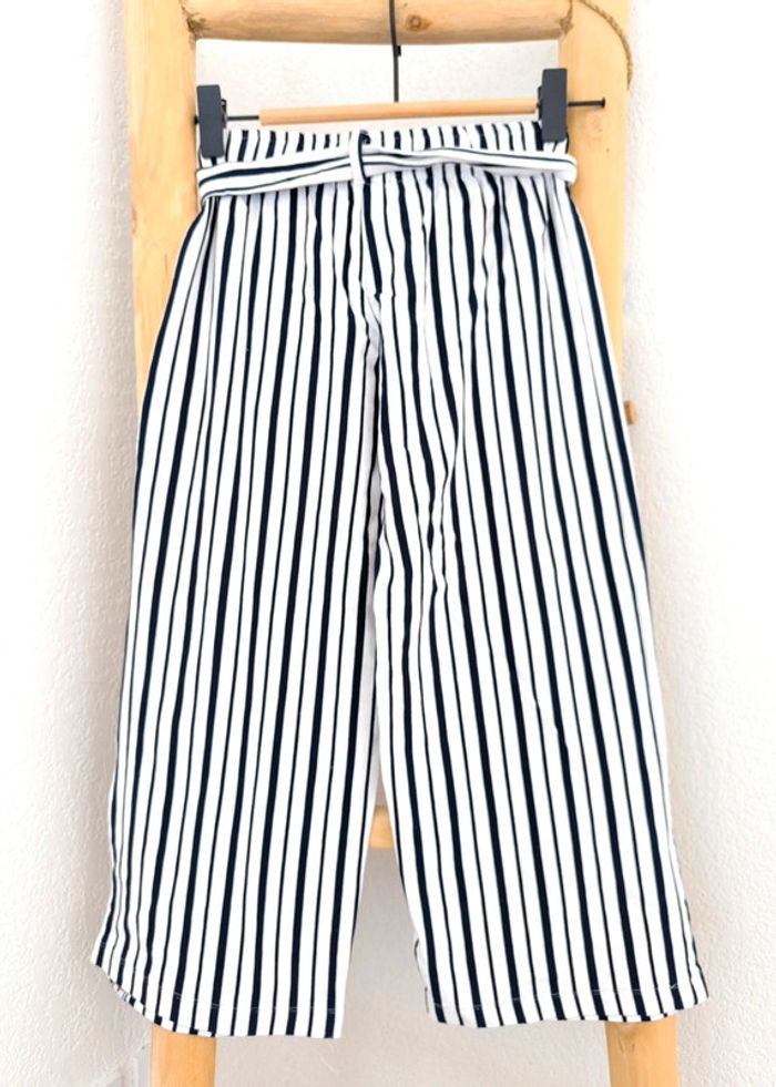 #loulaliefille9ans dans la recherche pour voir mon 9 ans fille Pantalon large Toptim coton épais, blanc rayures bleu marine, taille élastique avec ceinture. Sur la photo ma fille était au 10 ans. Kiabi seconde main et beebs possible