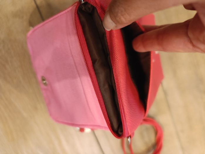 Sac à main enfant à bandoulière Rose fushia, en Sky, style cuir De très bonne qualité 👌 La bandoulière peut se retirer 2 poches zippées Une poche normale Fermeture sur le devant aimanté Dimensions 20 x 13 cm ✨État Neuf ✨ ( n'a jamais été utilisé, est resté suspendu dans la chambre de ma fille) Photos prises avec et sans le flash 😉