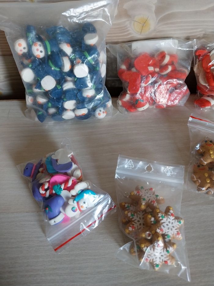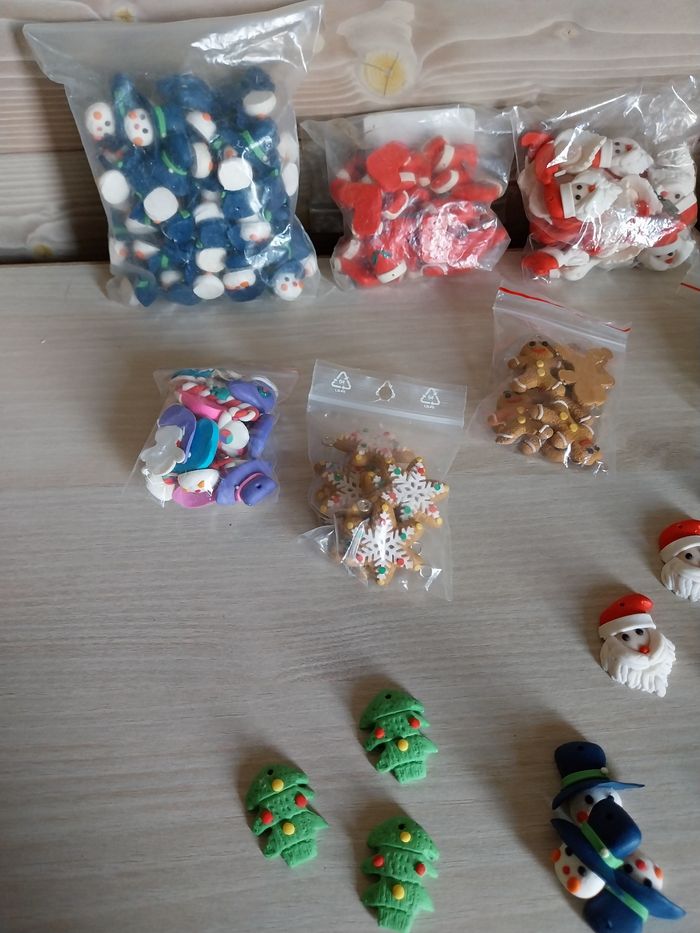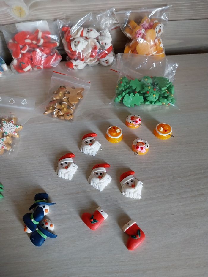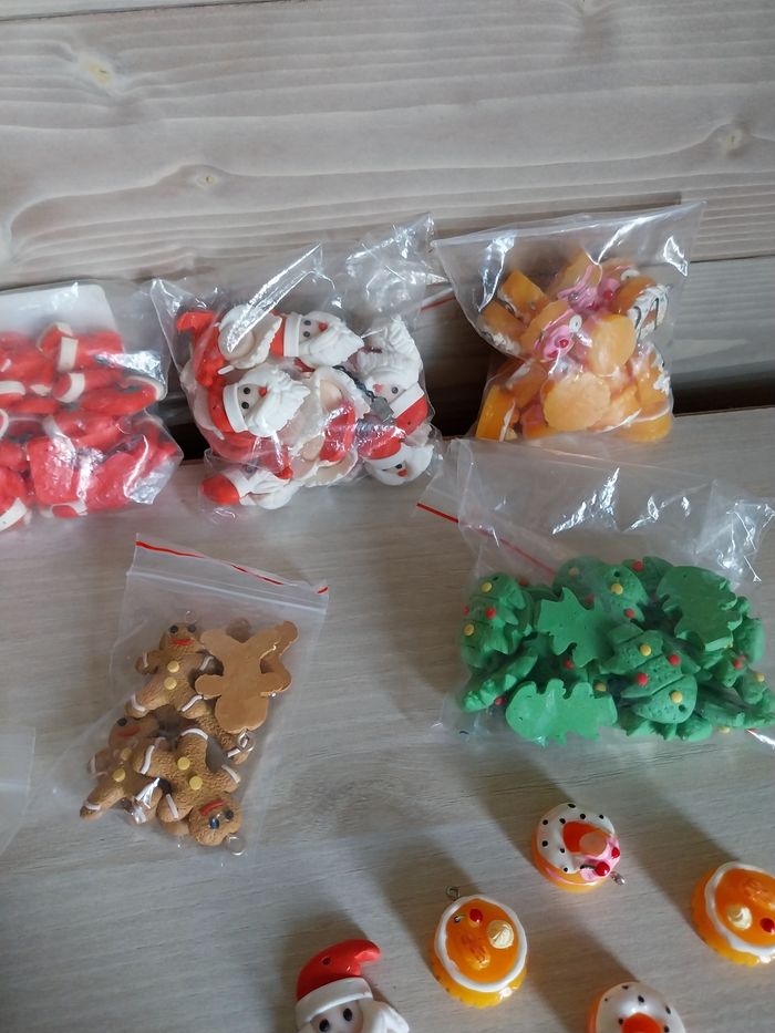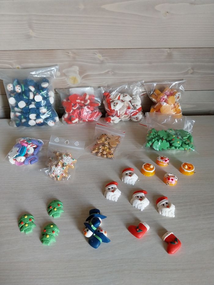 Sujets de Noël en pâte polymère pour création Le lot est de 8 sachets