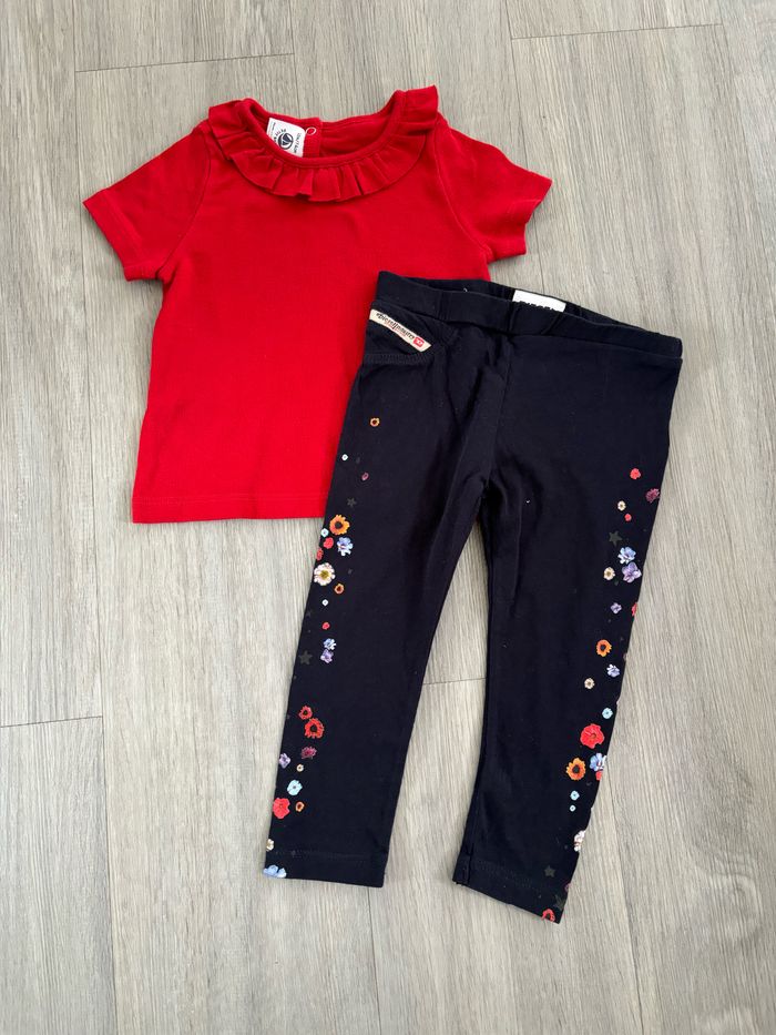 Ensemble taille 12 mois en très bon état 1 Tee shirt petit bateau 1 legging diesel