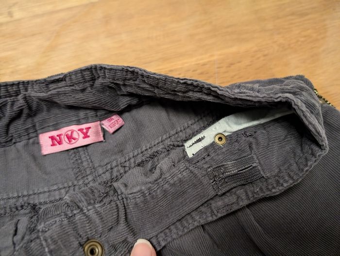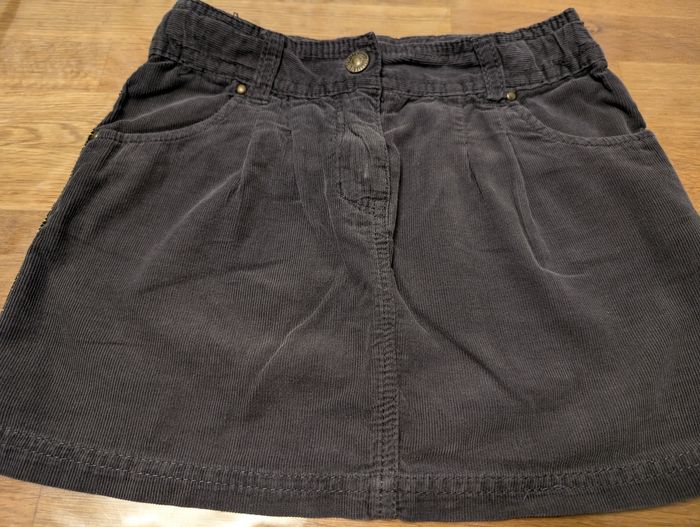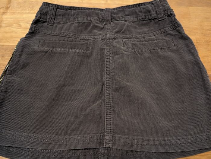 Jupe fille 8 ans NKY Très bon état, gris, velours léger , ceinture ajustable, étiquette intérieure coupée, trace de repassage au niveau de la fermeture éclair.