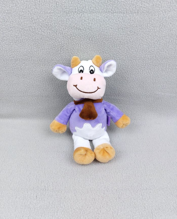 Peluche doudou vache mauve MILKA cloche marron blanc rose violet 22 cm - photo numéro 1