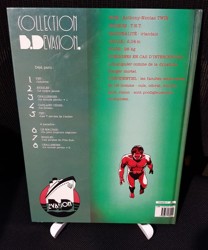 Nom : Anthony Nicolas TWIN - Surnom : T.N.T. - Taille : 2,04 m - Poids : 98 kg - Consignes en cas d'interception : à manipuler comme de la dynamite. Danger mortel. - Confidentiel : les facultés sensorielles de cet homme - ouïe, odorat, toucher, goût, vision - sont prodigieusement multipliées. Collection BD Évasion. Édition cartonnée Format 222x293 EAN 9782871530411 EO avr-91 Bon État, certains angles légèrement usés (maxi 3 mm), petites râpures sur deux bords de couvertures, choc bord haut, rayures sur couvertures, intérieur TBE, sans écritures. Une imposante liste de livres pour enfants disponible, essayez un premier contact :) Poids : 365 g