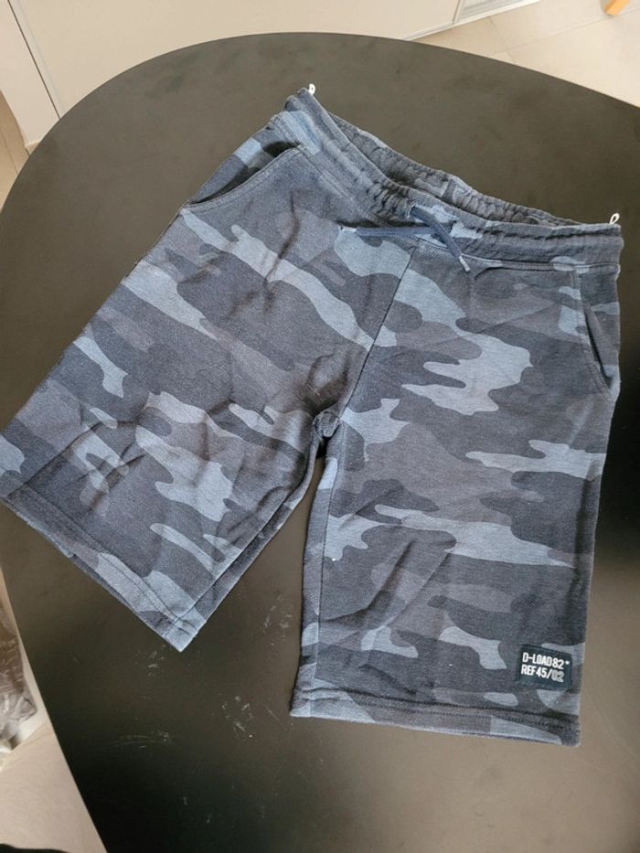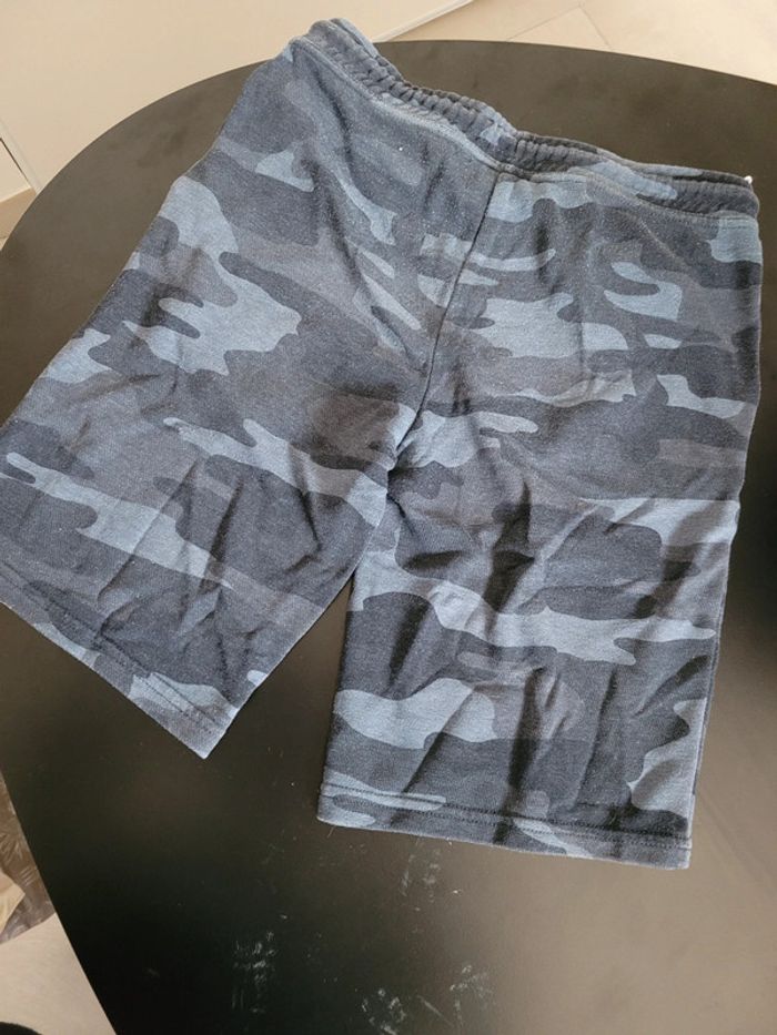 Short camouflage bleu/gris 13 ans C&A. Quelques bouloches : cf dernière photo. #jeannegomez_short_enfants