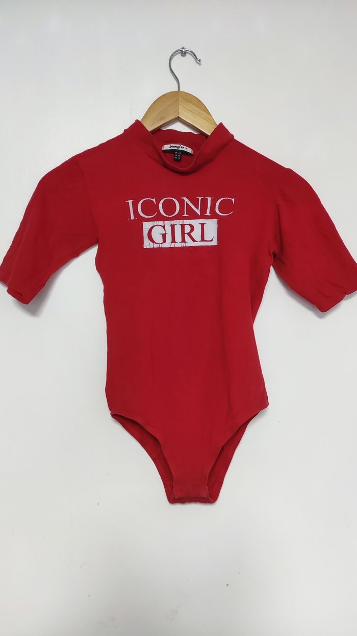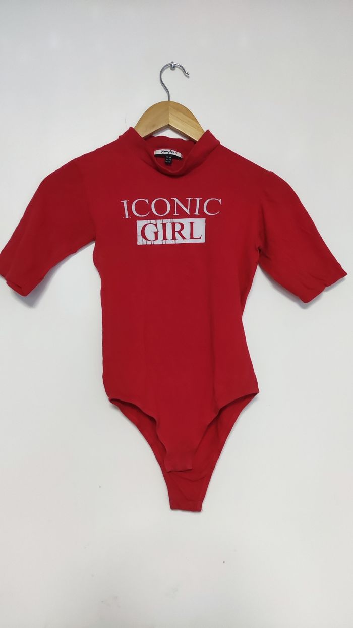 Body manches courtes Jennyfer, Taille XS Rouge, blanc Motif imprimer défraîchie Sinon en très bon état