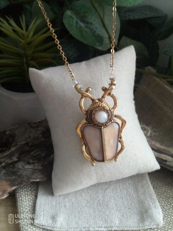 Collier scarabée en pierres semi précieuses - photo numéro 1