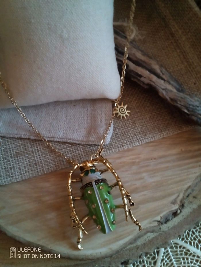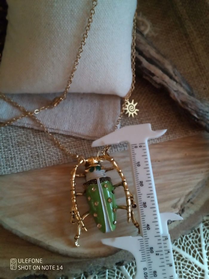Collier pendentif scarabée vert - photo numéro 2