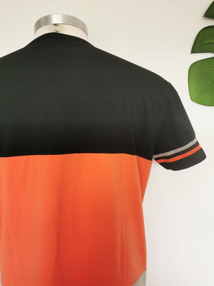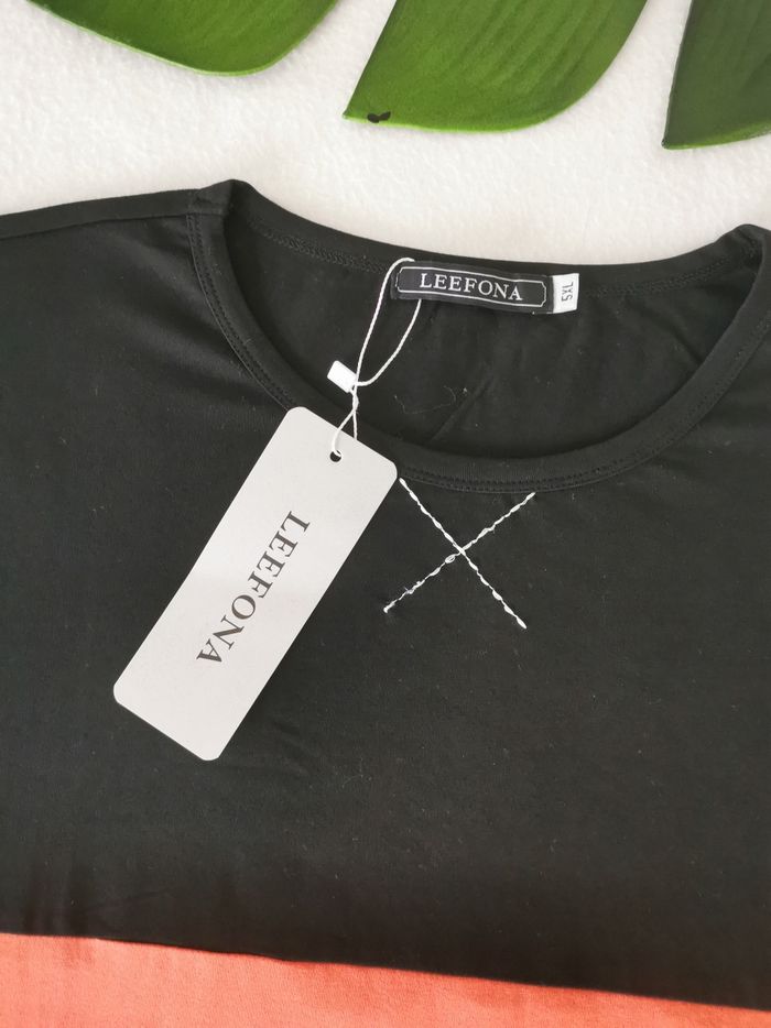 🧔 ÉTAT DE L'ARTICLE: 10/10 ✅️ Avec étiquette🔖, jamais porté Tee-shirt 👕 tricolore 🧔 Leefona Taille 5XL sur l'étiquette mais taille tres petit, correspond à une Taille XL (voir mesures 🔻) • Matière: 95% coton - 5% polyester • Col rond • Manches courtes • Croix ❌ brodée 🪡 sous le col • Couleur: Noir ⚫️ / Orange 🟠 / Gris • 📏 Longueur: 75 cm • 📏 Mesure épaules: 50 cm • 📏 Mesure sous aisselles: 58 cm Parfait état👌, avec étiquette🏷️, jamais porté 📎