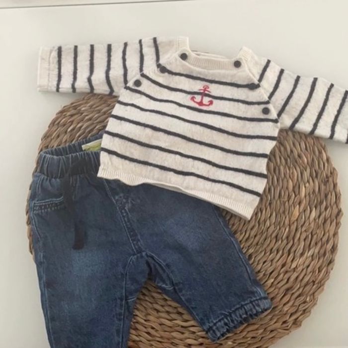 Pull marinière Bout’chou et Jeans Tape à l’œil Très bon état Taille 1 mois