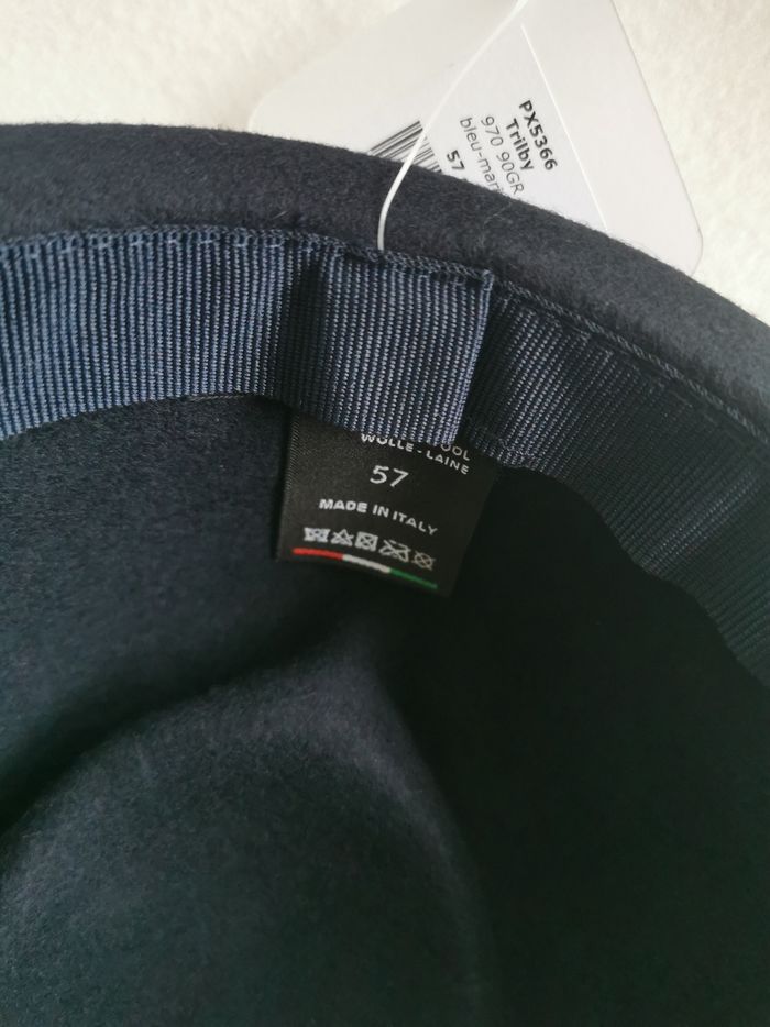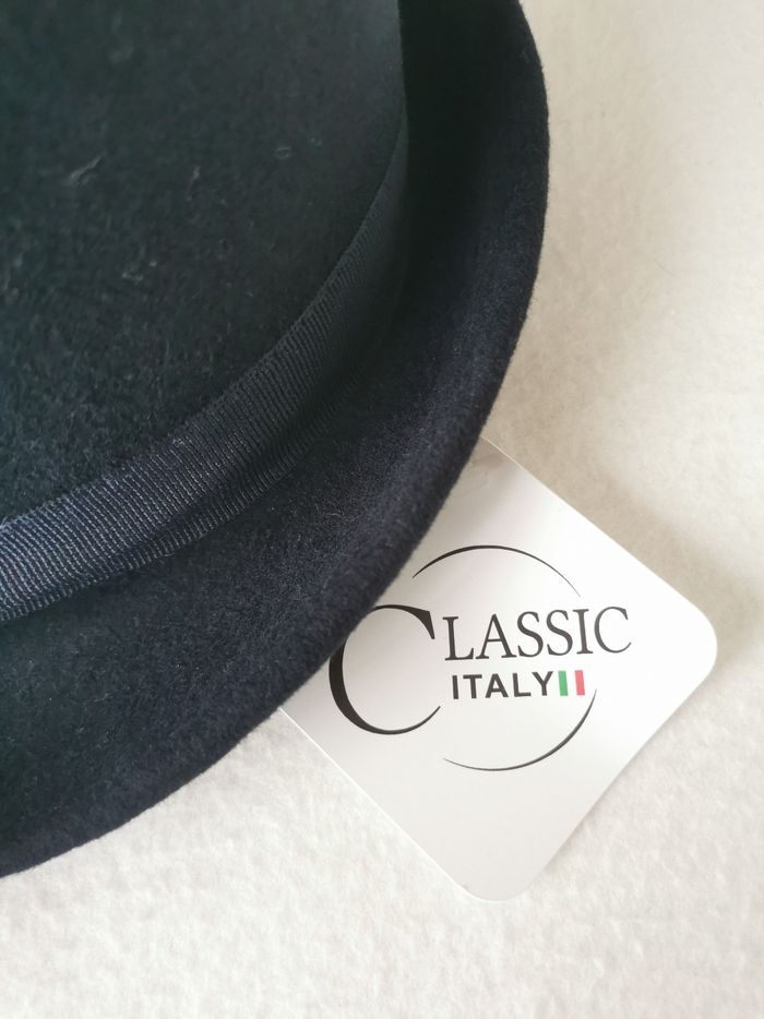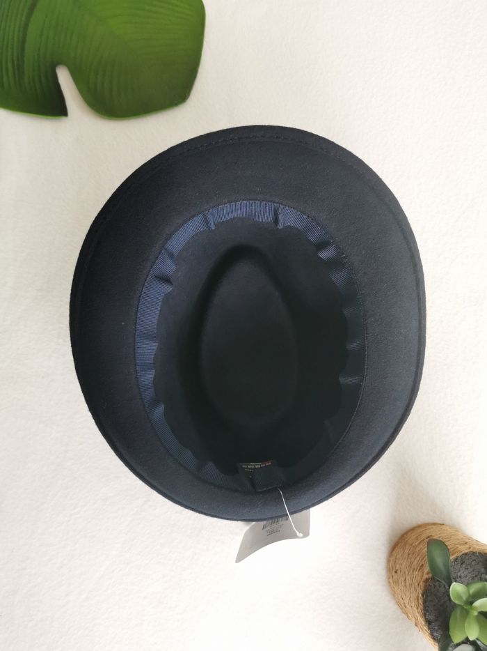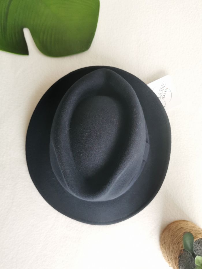 🎩 ÉTAT DE L'ARTICLE: 10/10 ✅️ Avec étiquette🔖, jamais porté 📷 Photos portées du site disponibles en message privé 📷 Chapeau 🎩 Trilby 🧔 Classic Italy Taille 57 cm • Matière: 100% laine • Made in Italy 🇮🇹 • Couleur: Bleu marine 🟦 • 📏 Mesure bord: 4.5 cm Parfait état👌, avec étiquette🏷️, jamais porté 📎