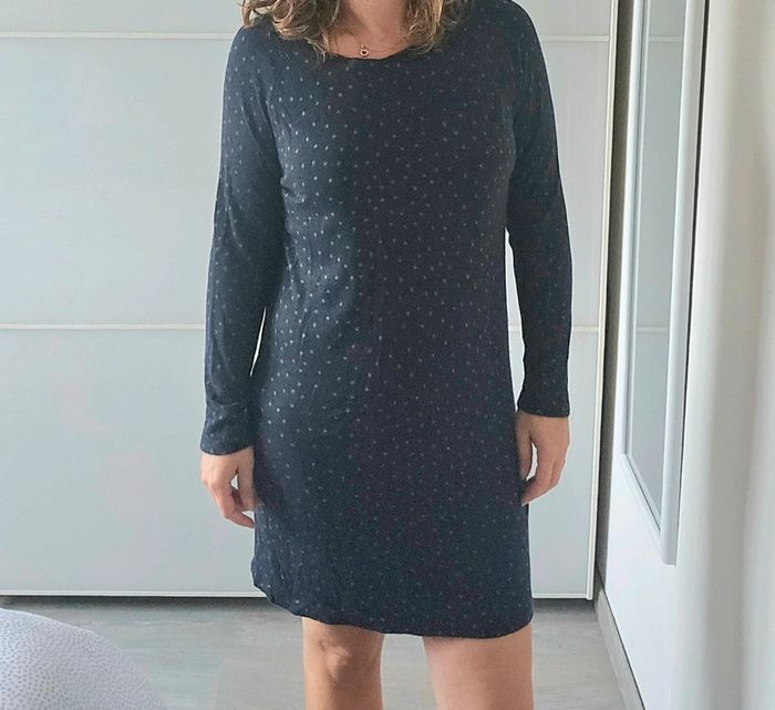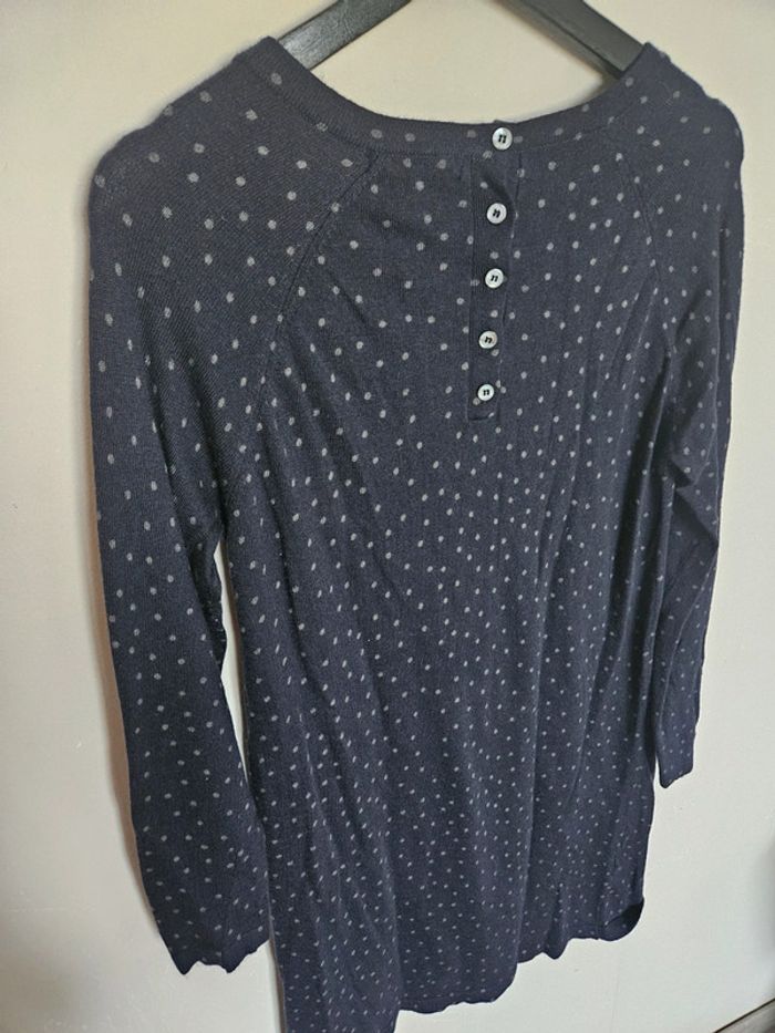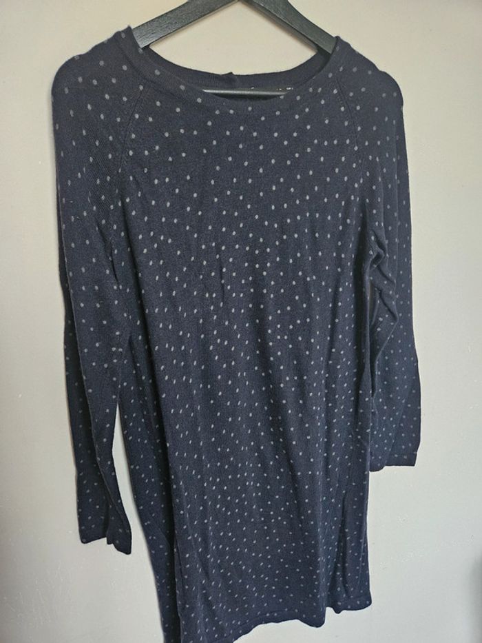 📌Lot 20% de remise dès 5 articles Robe pull, bleu marine avec des petits rond beige, toute douce, bouton sur le derrière ➡️Largeur à plat sous les bras 50 cm➡️ Longueur 92  cm ➡️étiquette composition manquante ⭐Excellent état ✈Envoi rapide des colis 💗 Abonnez vous à mon profil, nombreux articles ajoutés régulièrement ! #laetitresors_robe40 #laetitresors #robe #bleu #pois #gris #pull #manche #longue #bouton #rond #mango #marine