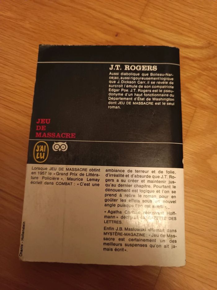 Livre Jeu de massacre De j.t. Rogers Livre en bon état intérieur Quelques marques d'usure extérieures Voir photos
