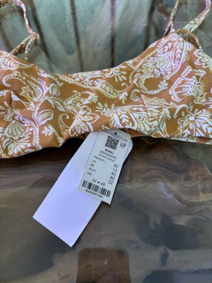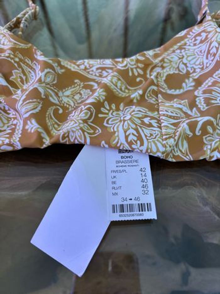 Haut de maillot de bain Etam Boho brassière bohème romanti Pas de rembourrage Bretelles réglables Taille 42 Neuf avec étiquette N'hésitez pas à faire des lots ✨ réduction dès 2 articles (d'autres maillots de bain à vendre) Pour voir mes autres maillots de bain à vendre : #mdbludi2607 ✉️Pas de remise en main propre